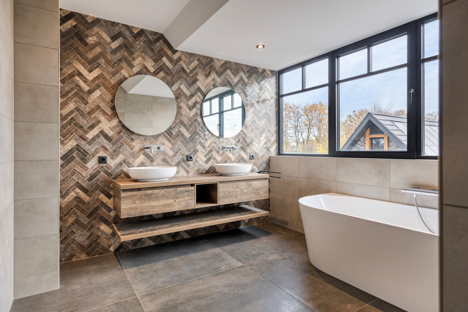 Overloop met drie ruime slaapkamers. De luxe badkamer is voorzien van een ligbad, douche, en dubbele wastafel. Er is een separaat toilet op deze verdieping.