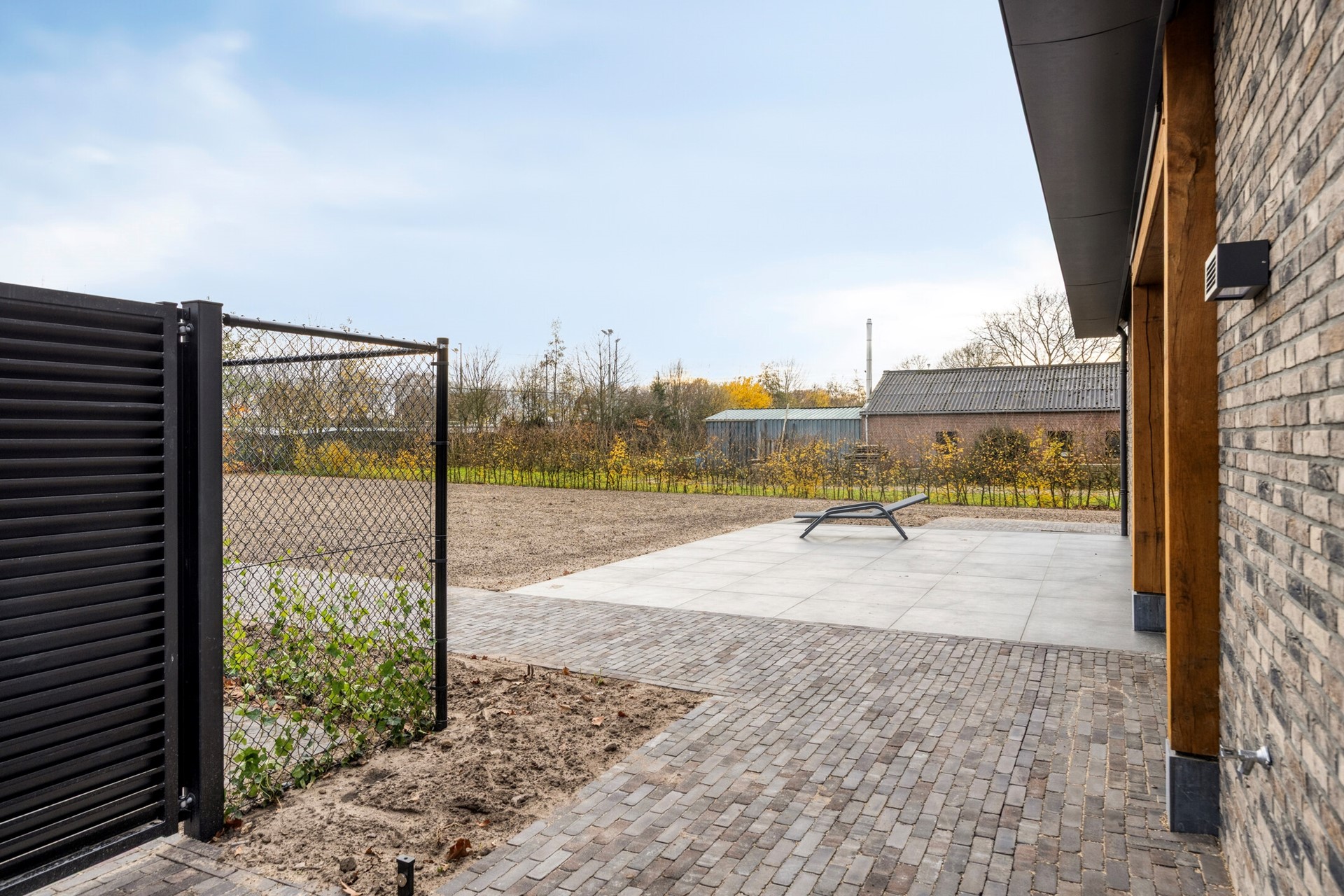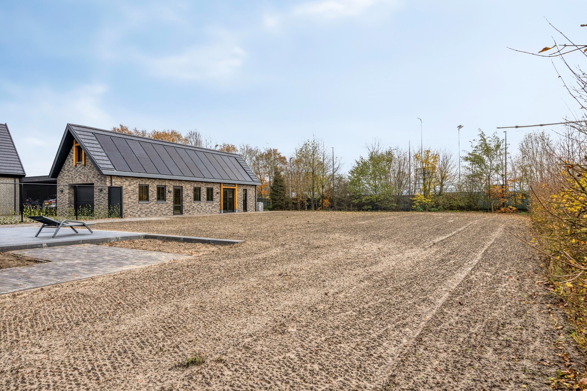 De tuin is onderhoudsvriendelijk aangelegd en het gras is ingezaaid. Een robot biedt straks de luxe dat het gras altijd netjes gemaaid zal worden. De tuin biedt volop privacy.