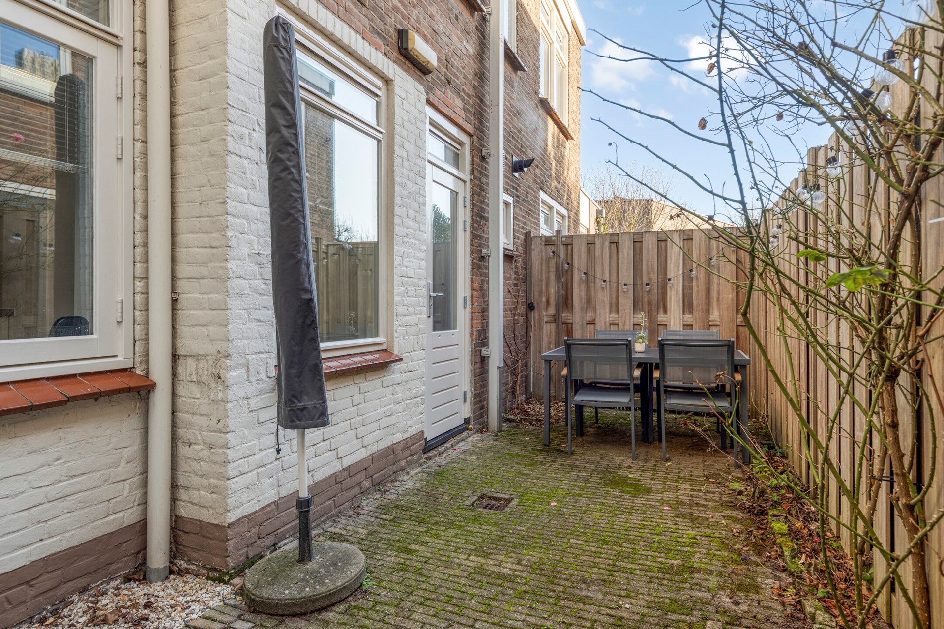Vanuit de CV ruimte is de tuin te bereiken. De gezellige stadstuin biedt genoeg ruimte om heerlijk buiten te kunnen vertoeven en te bbq-en.