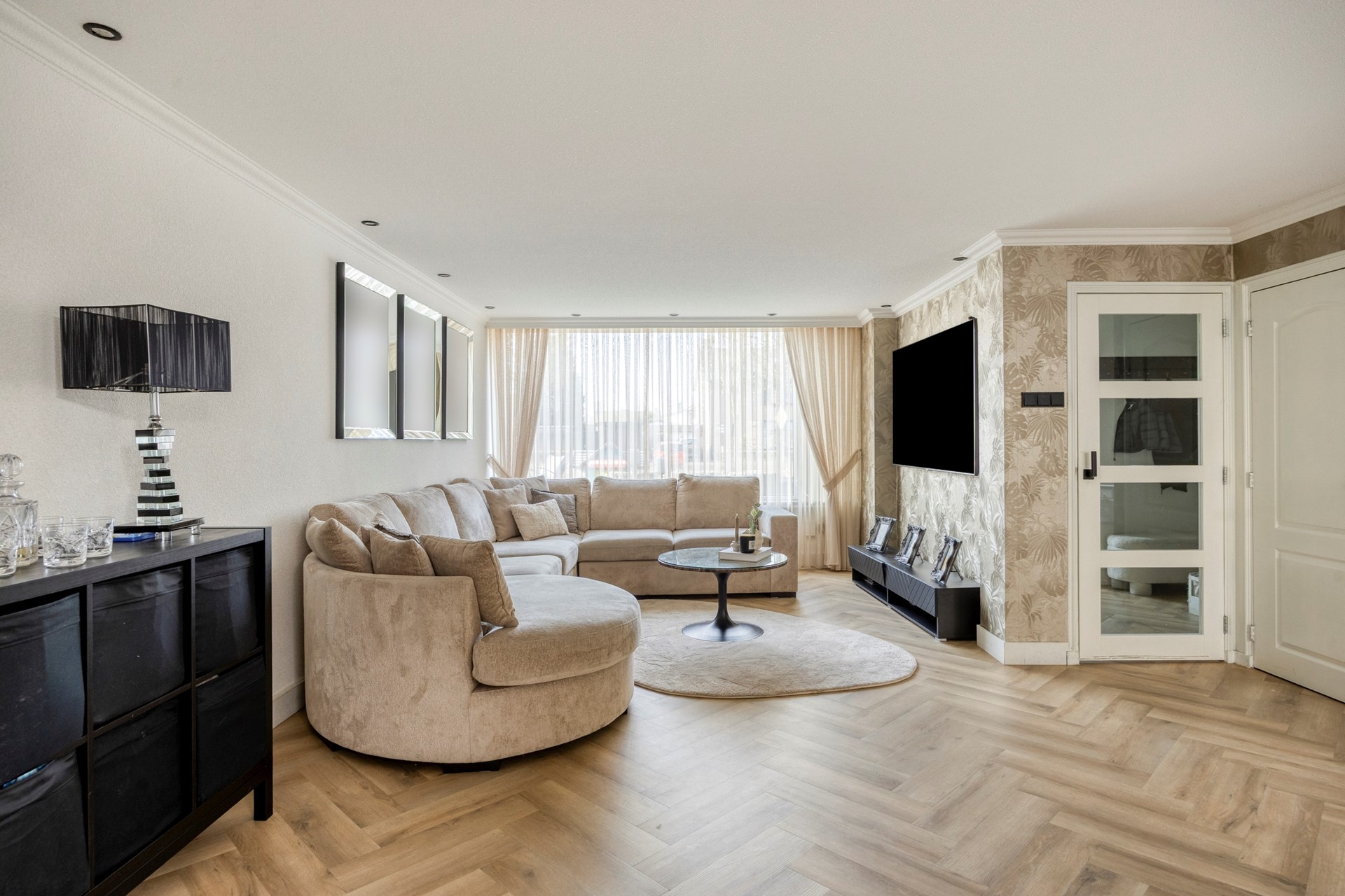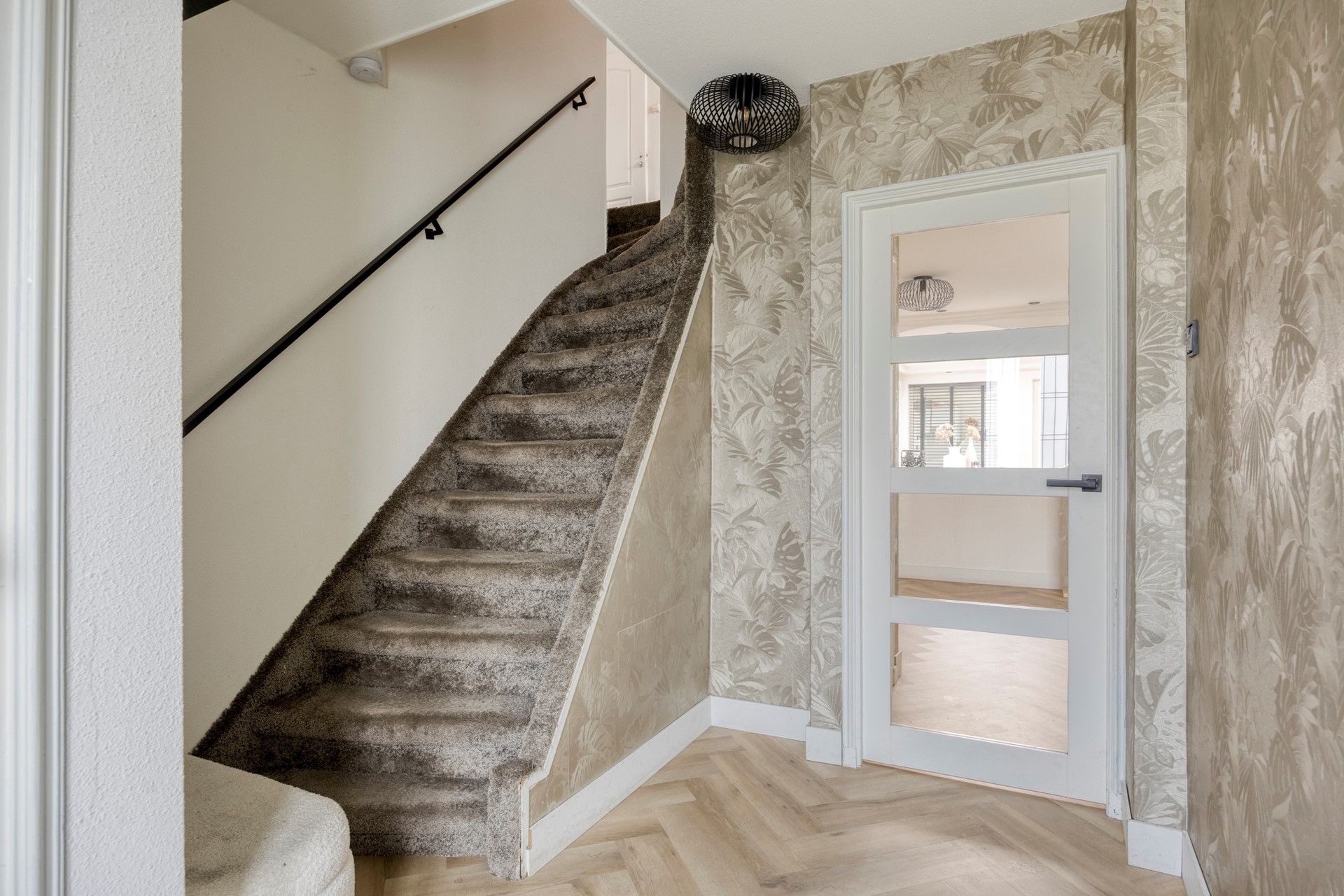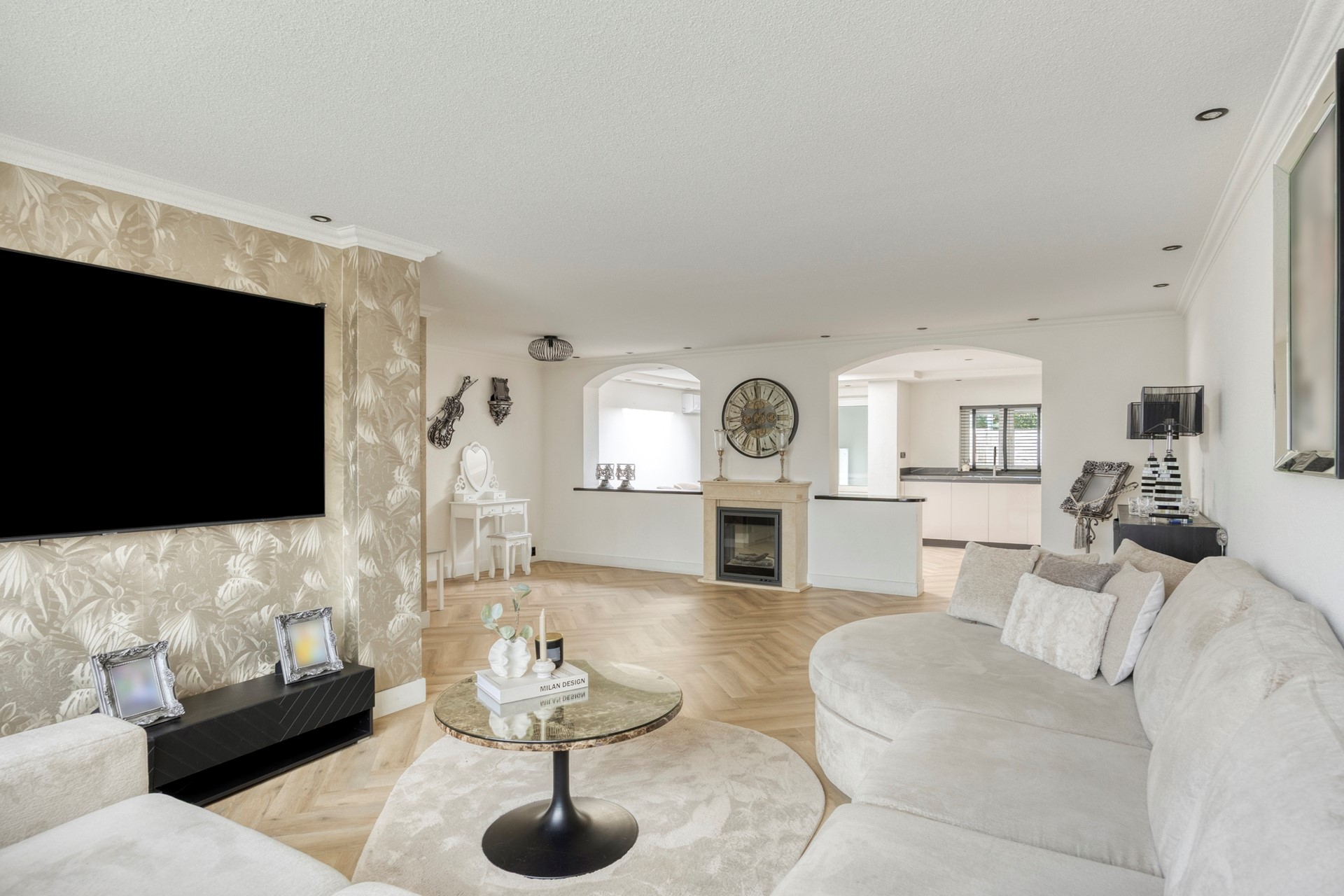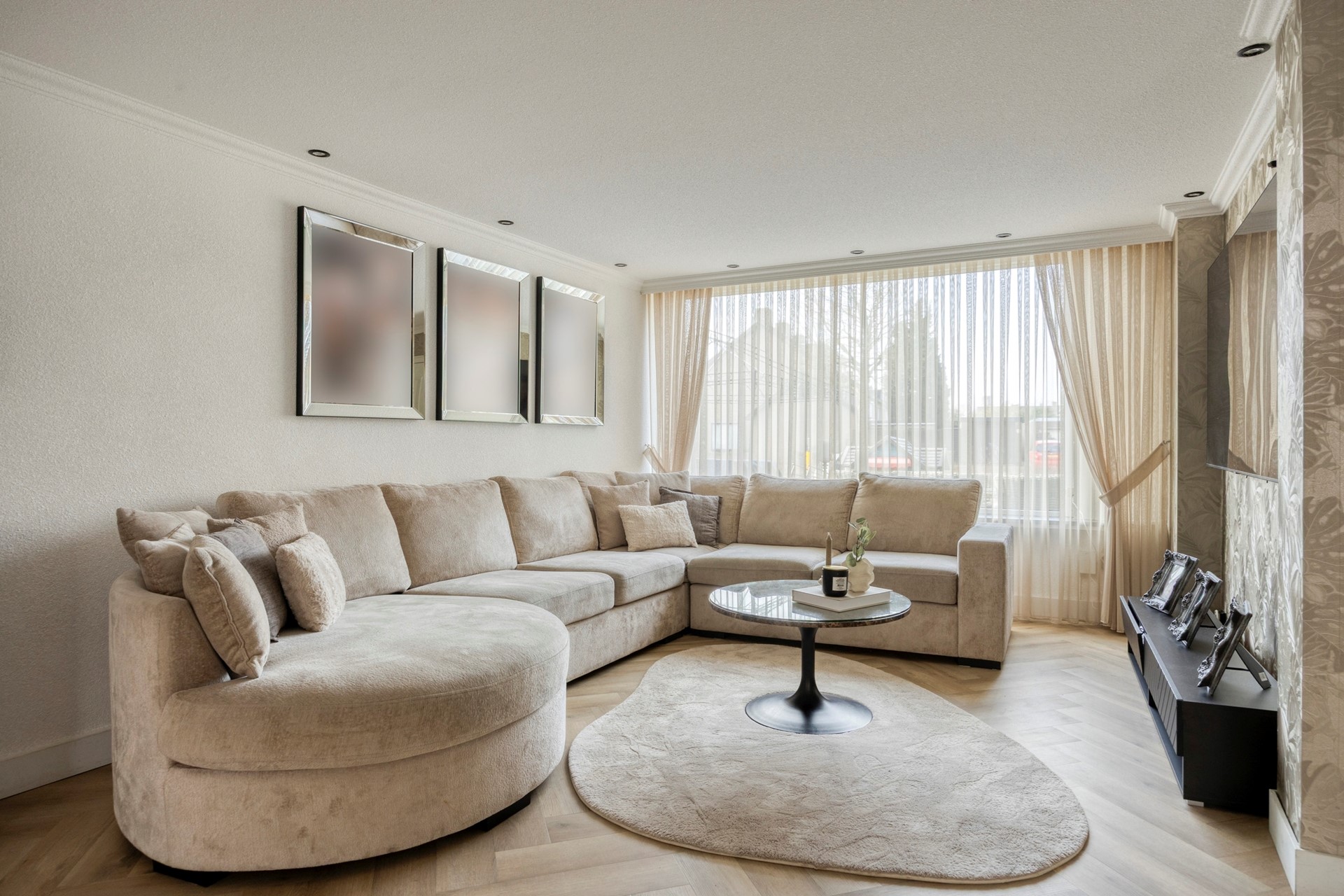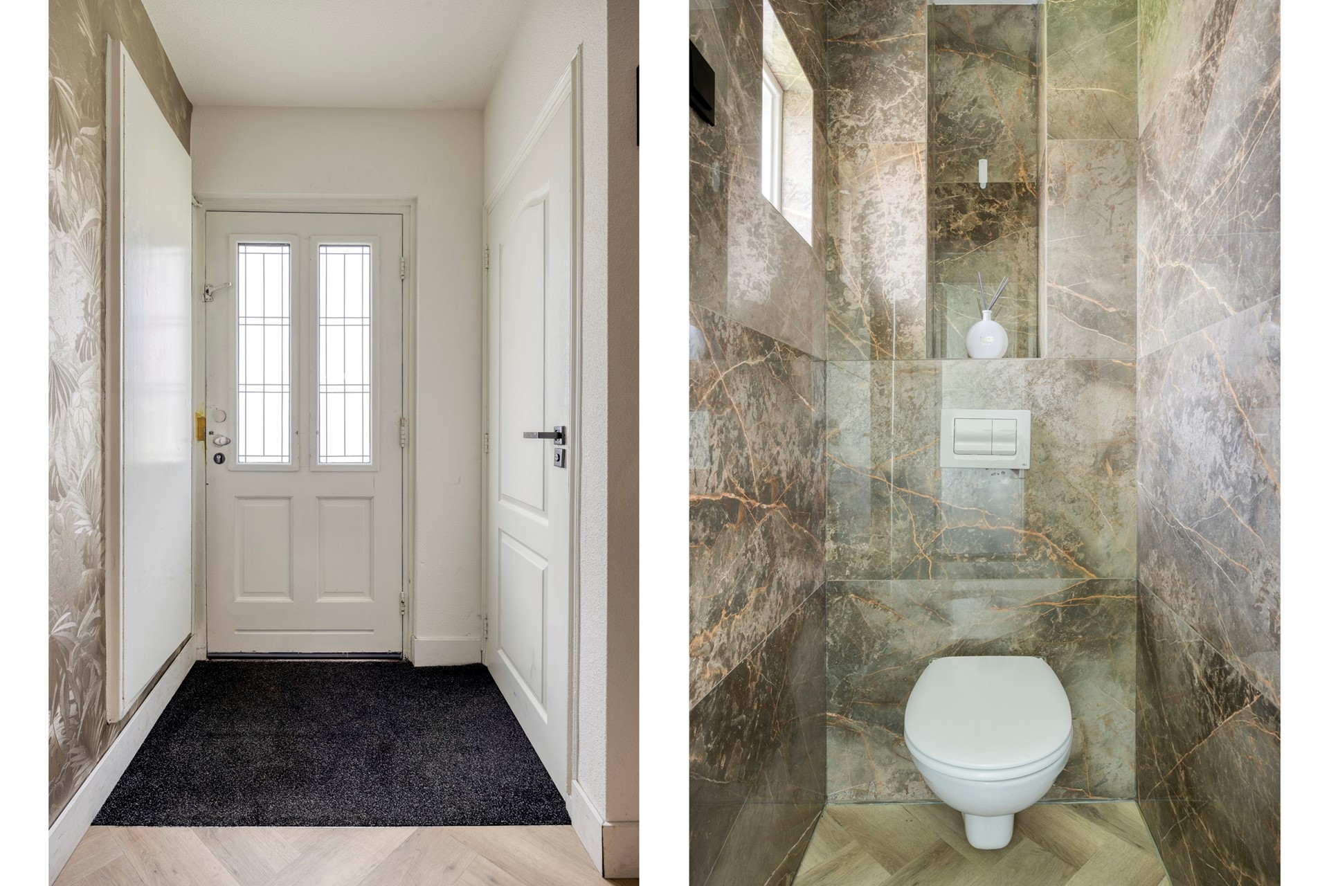 Via de entree komt u in de hal met meterkast, trapopgang en moderne toiletruimte (2025). Vanuit de hal bereikt u de lichte en zeer ruime woonkamer. Dankzij de gunstige indeling is dit een heerlijke, gezellige woon- en leefruimte. Er ligt een mooie pvc vloer met vloerverwarming.