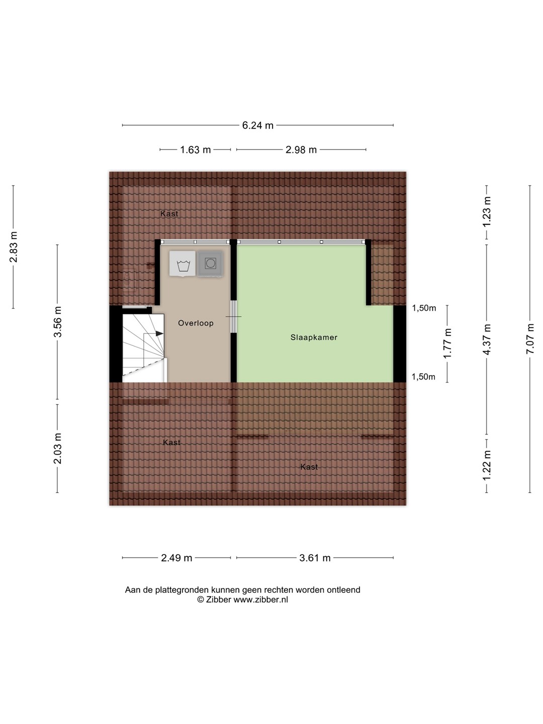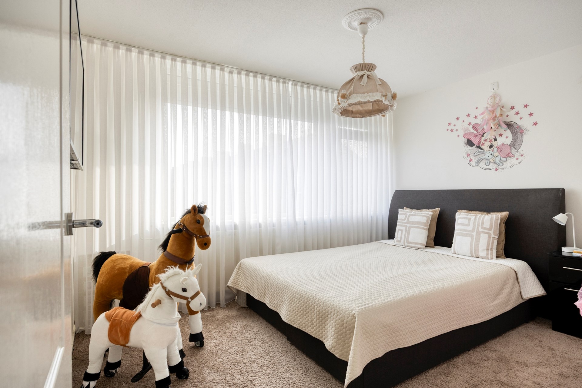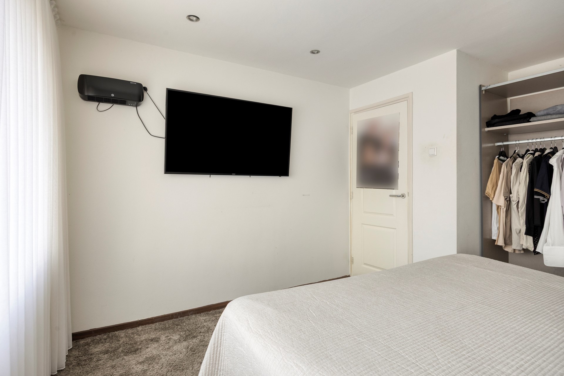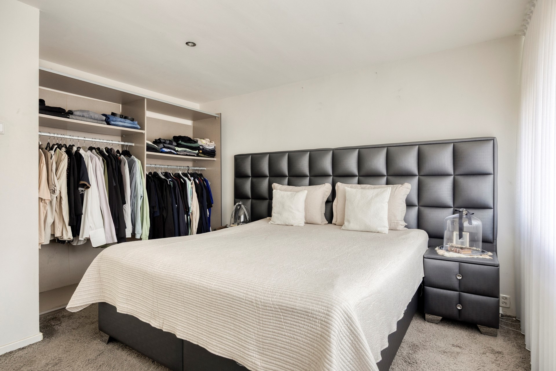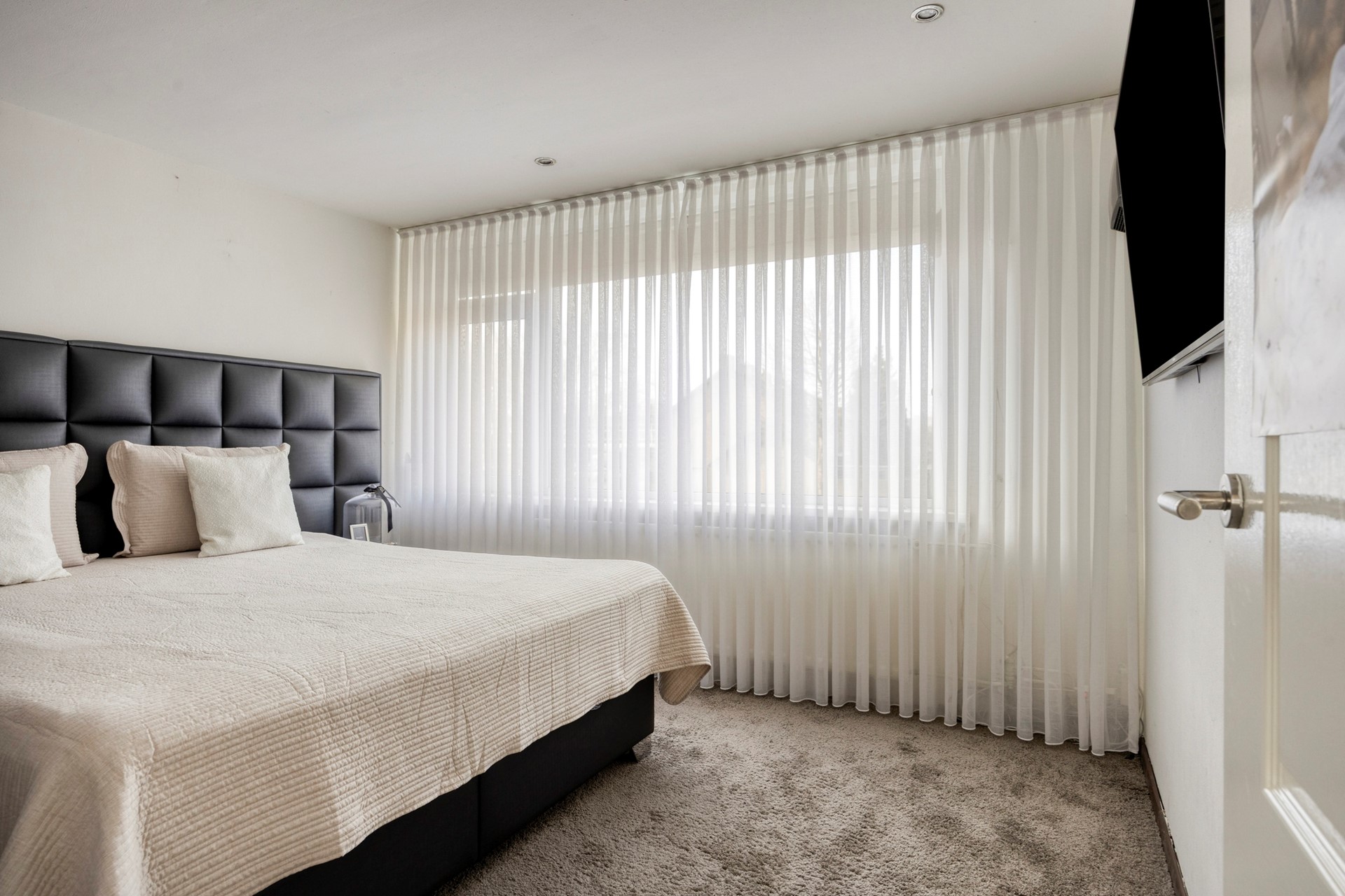 De zolderverdieping is via een vaste trap bereikbaar en voorzien van een dakkapel (over de gehele breedte) waardoor er veel lichtinval en extra leefruimte is gecreëerd. Hier bevinden zich de voorzolder met aansluiting voor de wasmachine en droger en de CV ketel hangt hier en de tweede airco. De vierde slaapkamer is van een prima formaat en ook voorzien van vloerbedekking. De knieschotten bieden extra bergruimte.
