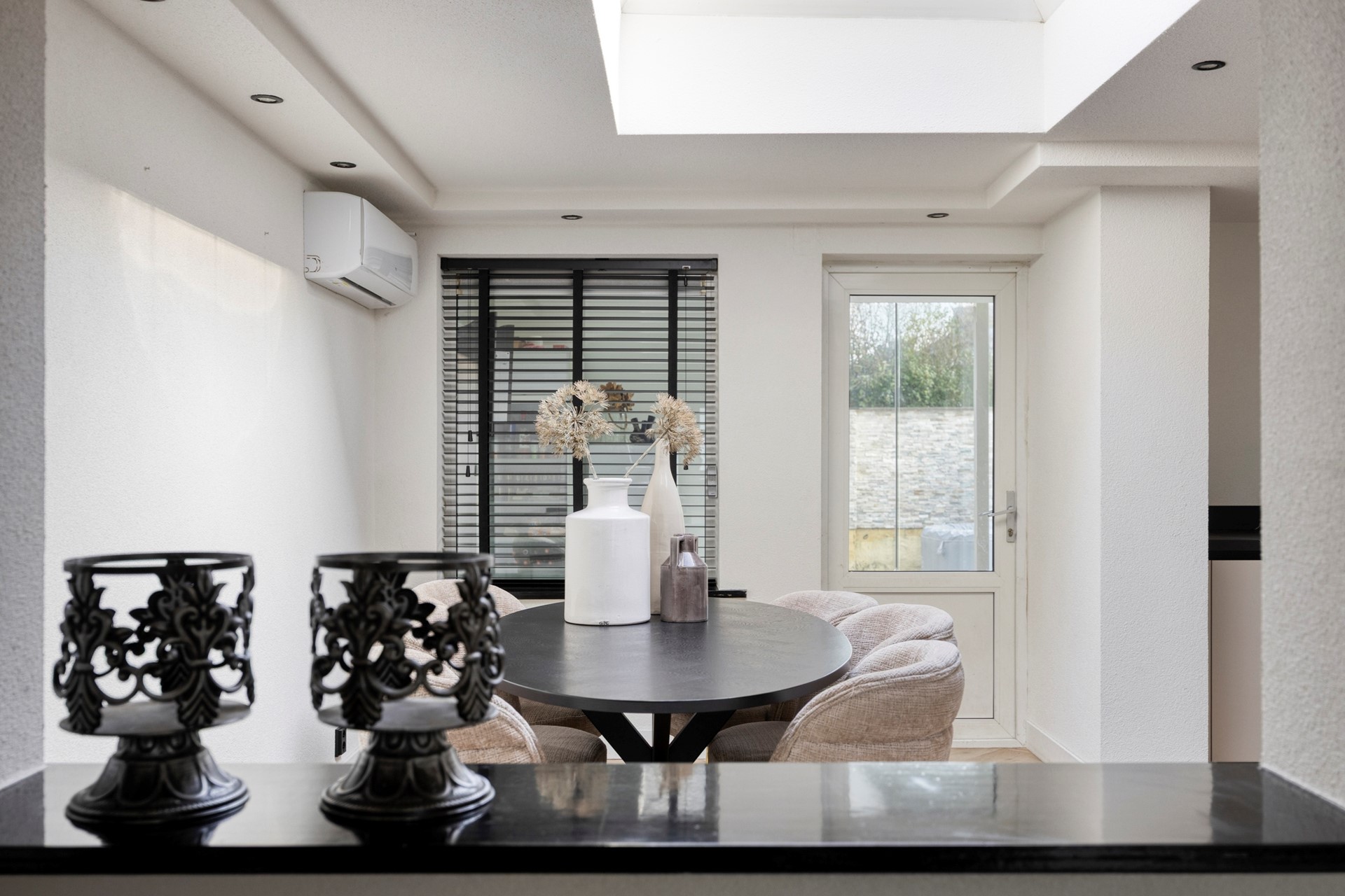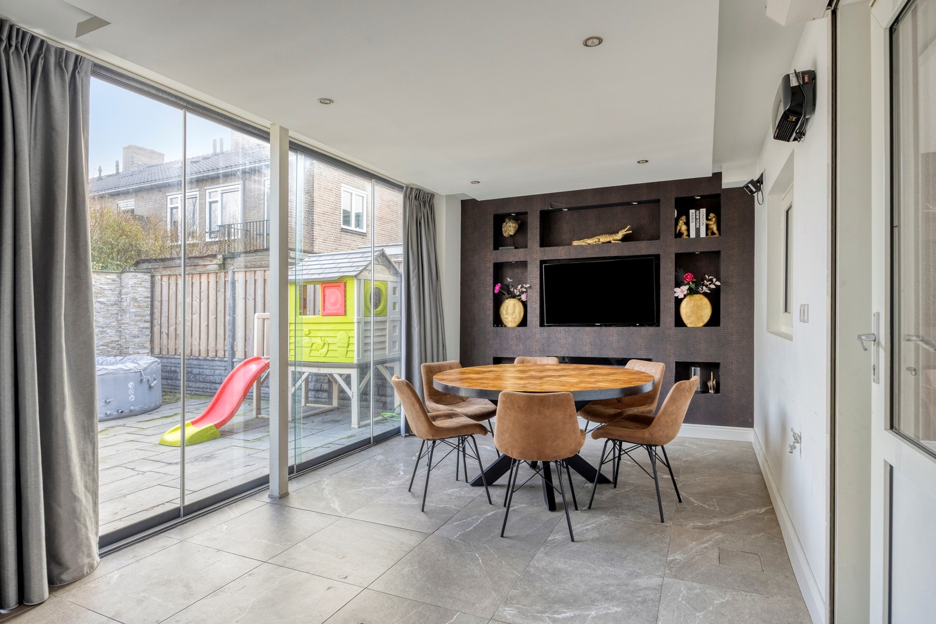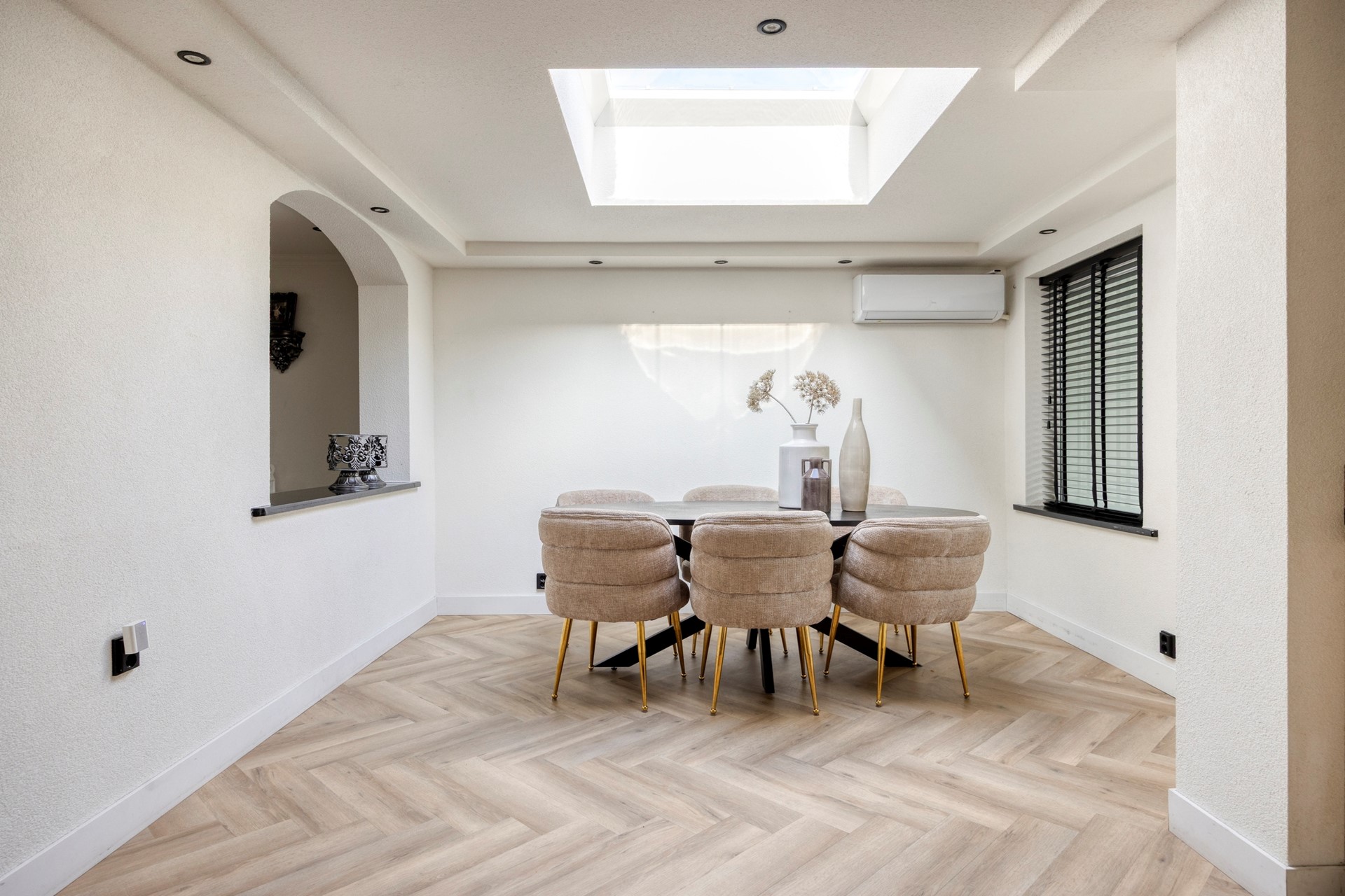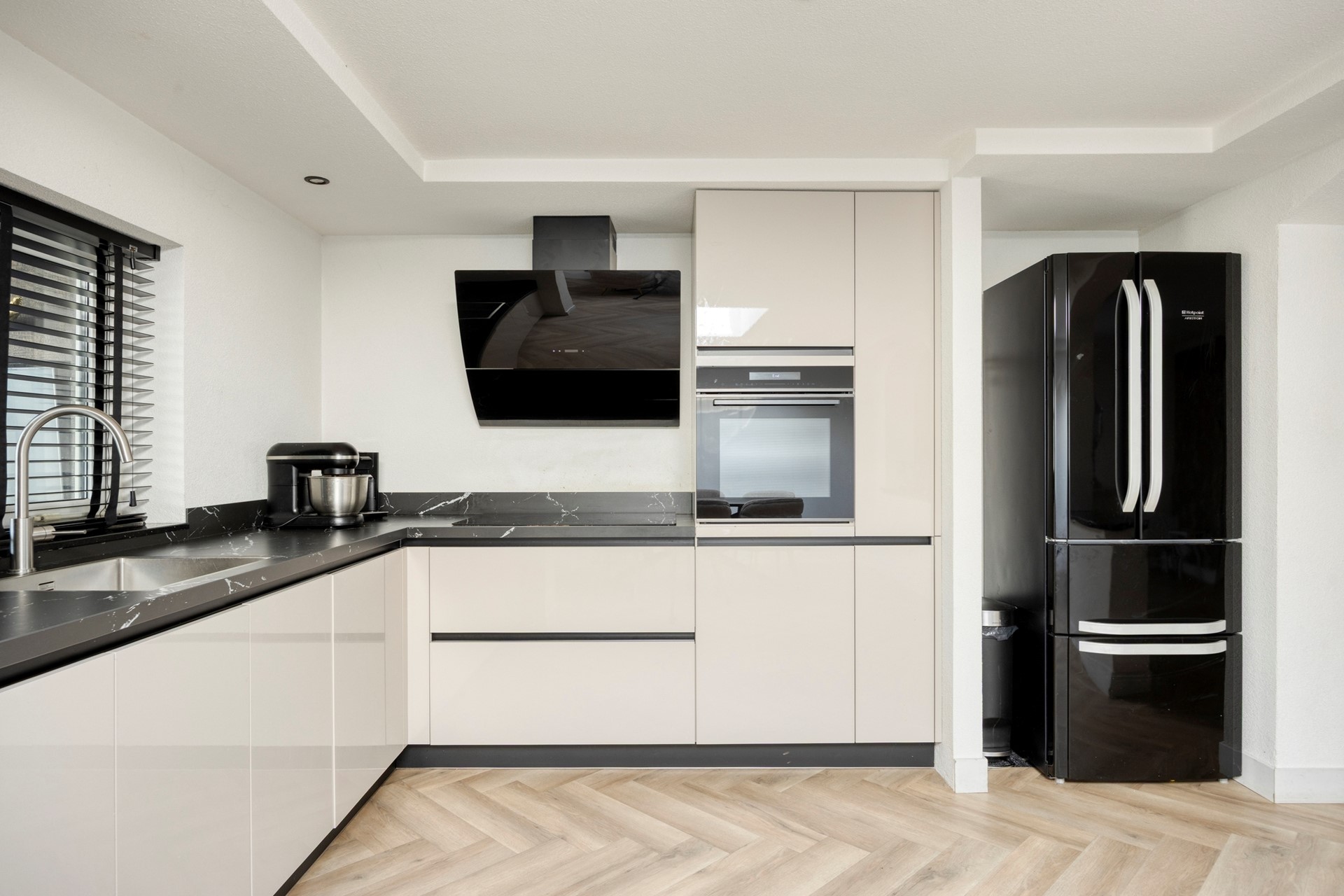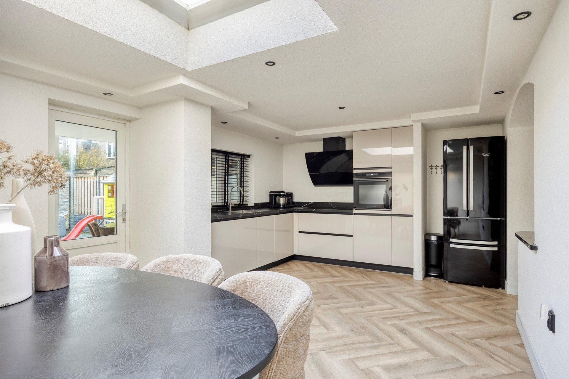 De keuken bevindt zich aan de achterzijde van de woning. Deze is uitgerust met een inductie kookplaat, afzuigkap, vaatwasser, oven en separatie koelkast en vriezer. Er is genoeg ruimte voor een grote eettafel. Door de lichtkoepel komt er veel extra licht naar binnen. Verder is er nog een airco aanwezig. Vanuit de keuken is er toegang tot de riante serre. Deze is in 2024 aangebouwd en de wanden en het plafond zijn geïsoleerd. Deze ruimte kan via de glazen schuifpui direct bij de achtertuin betrokken worden.