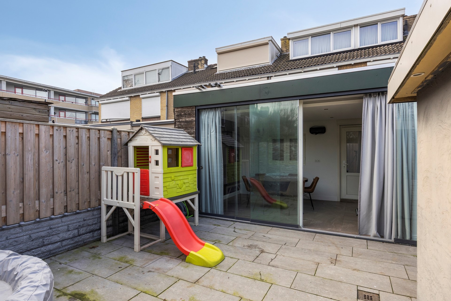 De achtertuin is onderhoudsvriendelijk en heeft een achterom. Er is een ruime stenen berging.