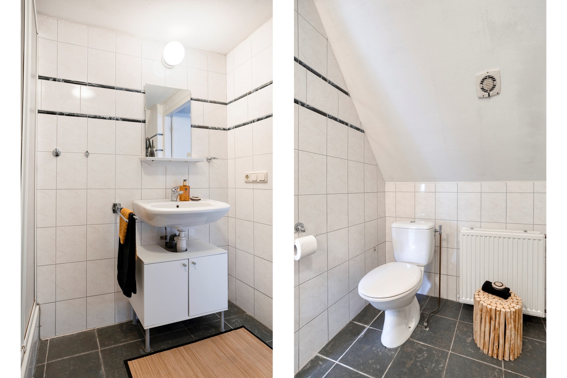 Er is een apart toilet aanwezig. Achterin het appartement bevindt zich de slaapkamer. Met een aparte ruimte voor de wasmachine en CV ketel en veel extra ruimte om je kleding op te bergen of gewoon als extra opbergruimte te gebruiken. Tevens is vanuit de slaapkamer de badkamer te bereiken. Deze beschikt over een douche, ligbad, toilet en wastafel.