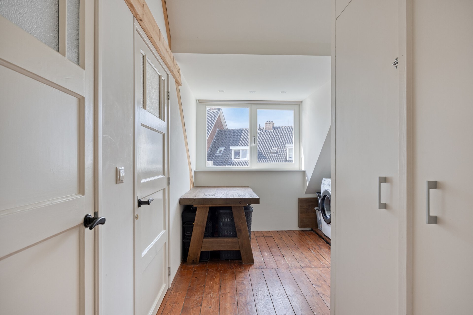 Goed ingedeelde zolder bestaande uit een voorzolder en een derde en vierde slaapkamer. Op de voorzolder zijn de aansluitingen voor de was-apparatuur achter een verschuifbaar paneel, de standplaats van de cv-combiketel en er is extra bergruimte in de drie op maat gemaakte kastenwanden, een schuine bergkast en toegang tot een vliering. Door het plaatsen van een dakkapel (met zonwering) aan de achterzijde (2018) is er veel extra ruimte gecreëerd. Deze kamer is nu in gebruik als kantoor. De slaapkamer aan de voorzijde beschikt over een wastafel en er is een ruime vide. Ideaal voor extra opbergruimte of je kunt er een slaapplek van maken. Het geheel is fraai afgewerkt met gestuukte wanden, de zichtbare balkenconstructie en de originele houten vloer.