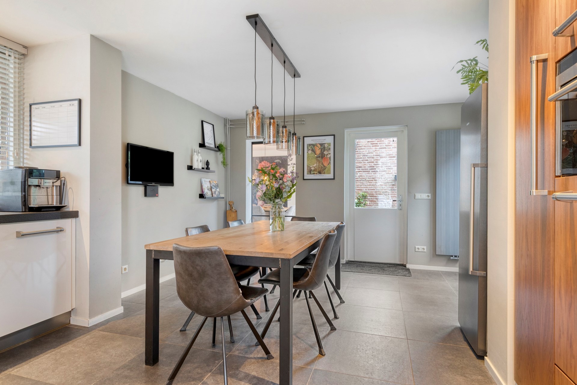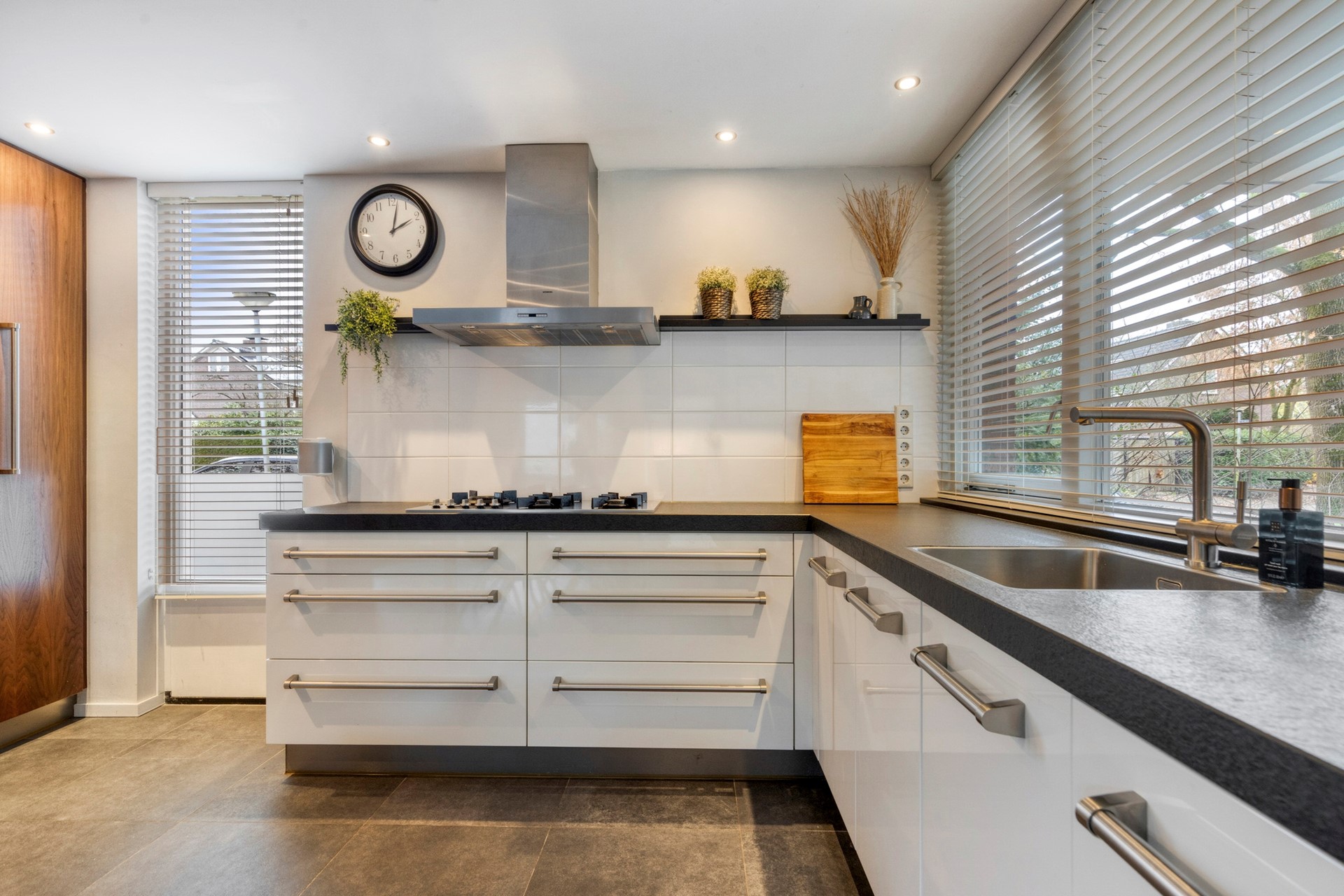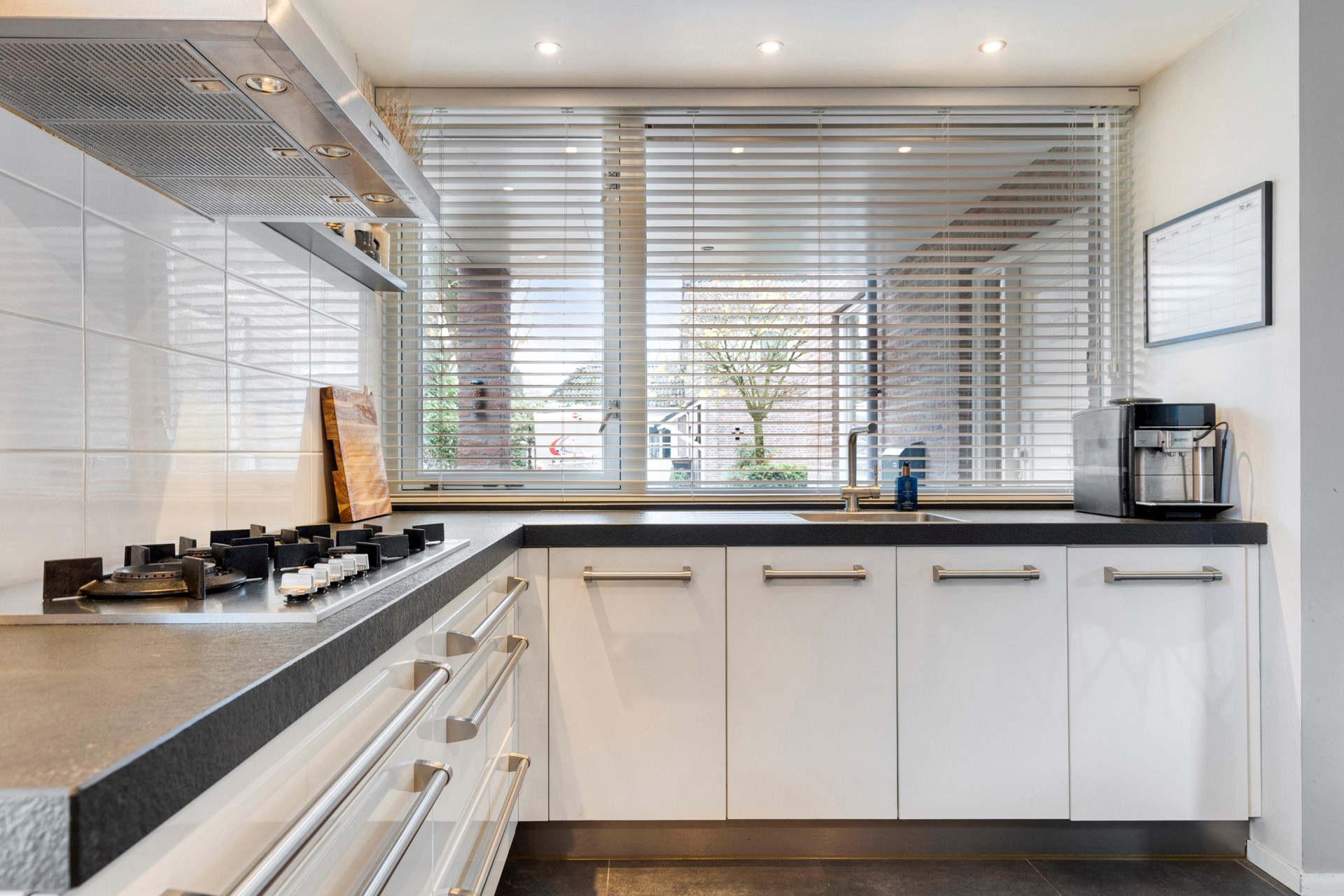 Aan de achterzijde ligt de woonkeuken: een plek waar je niet alleen kookt, maar ook leeft. Vanuit hier loop je via de openslaande tuindeuren zo de tuin in.