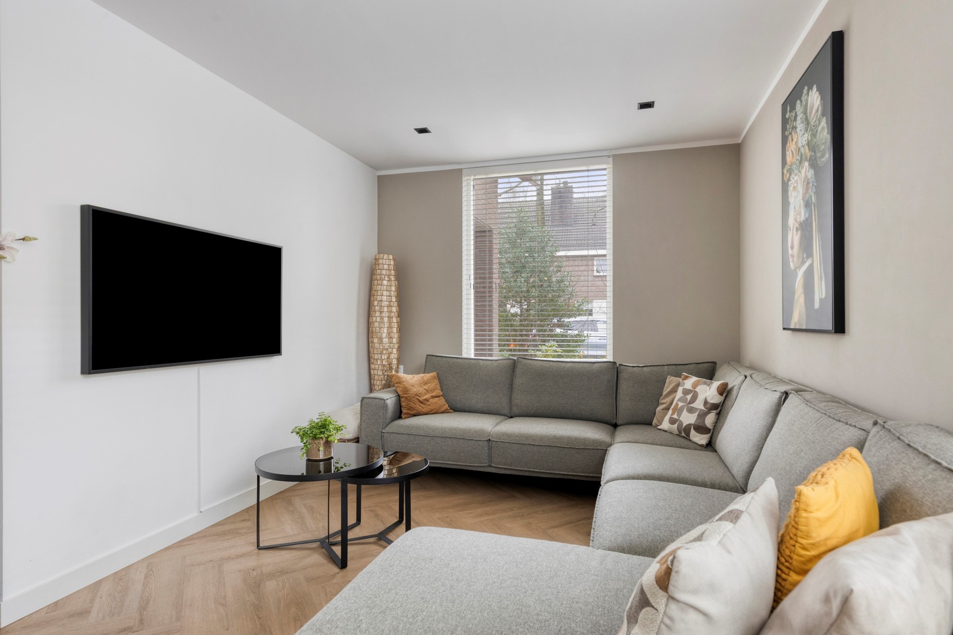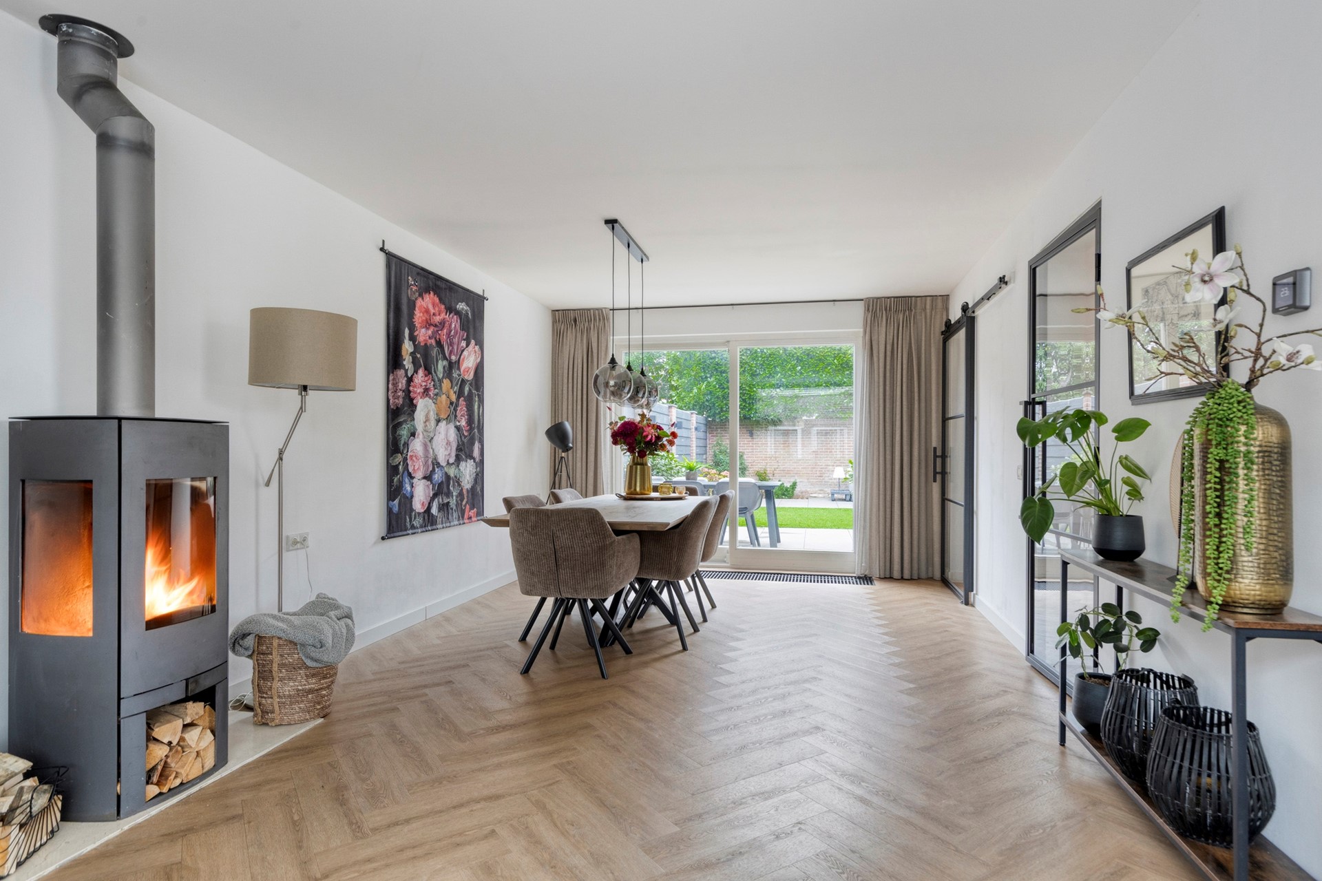 De woonkamer is zo’n plek waar je je meteen thuis voelt. Er is genoeg ruimte voor een gezellige zithoek én een royale eettafel. De woonkamer is in 2021 voorzien van een nieuwe pvc-visgraatvloer en de muren en het plafond zijn strak gestukt.