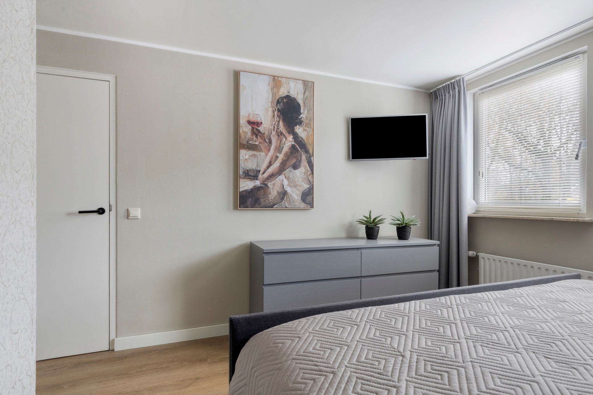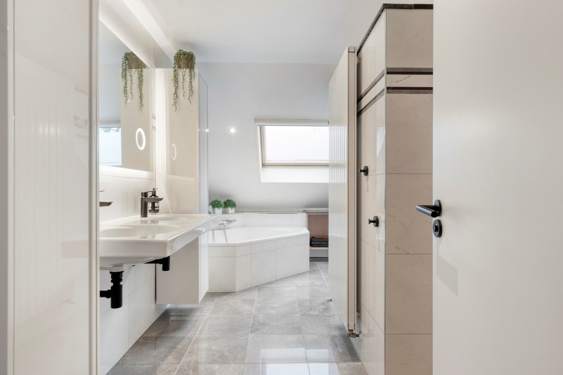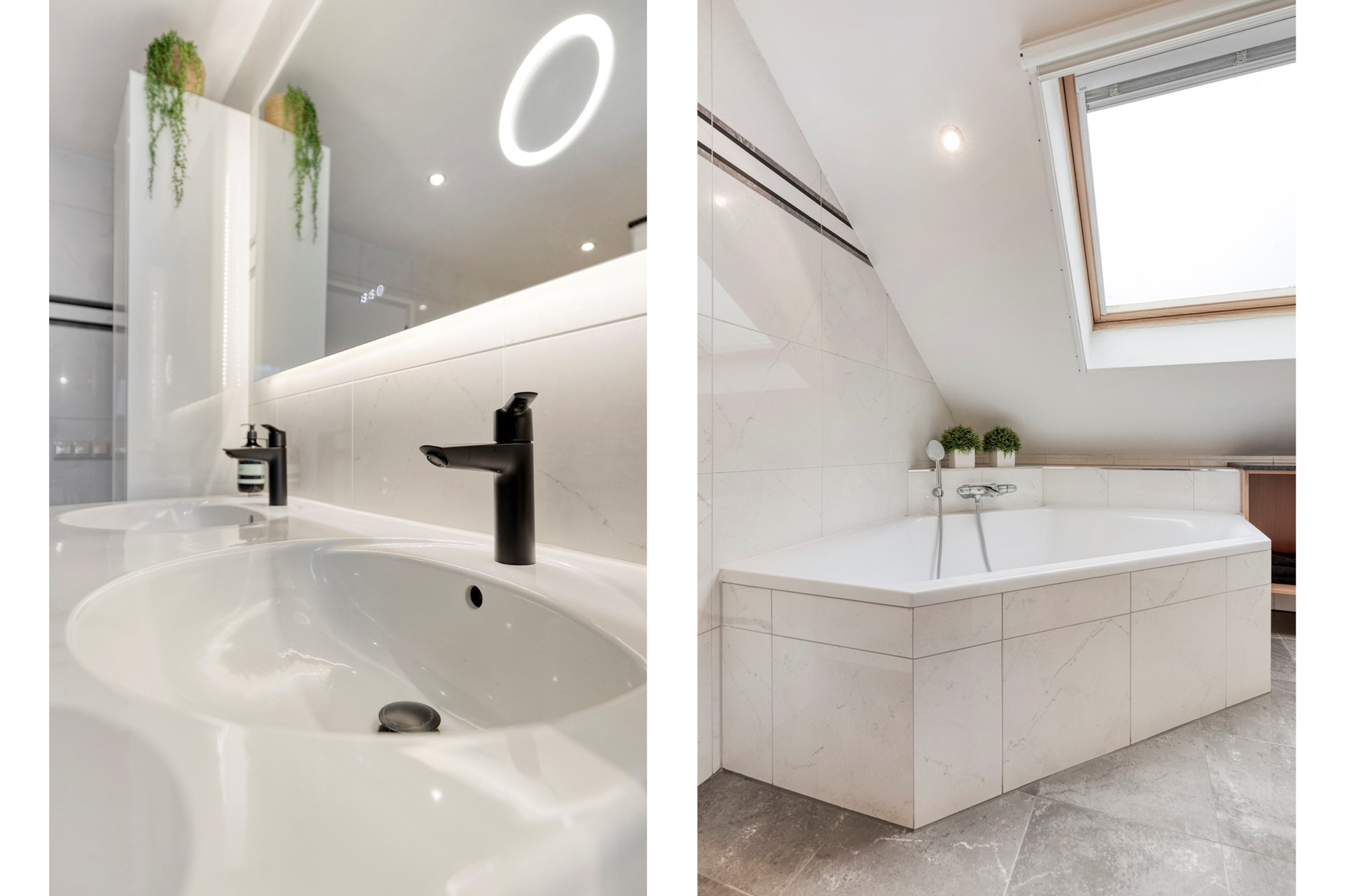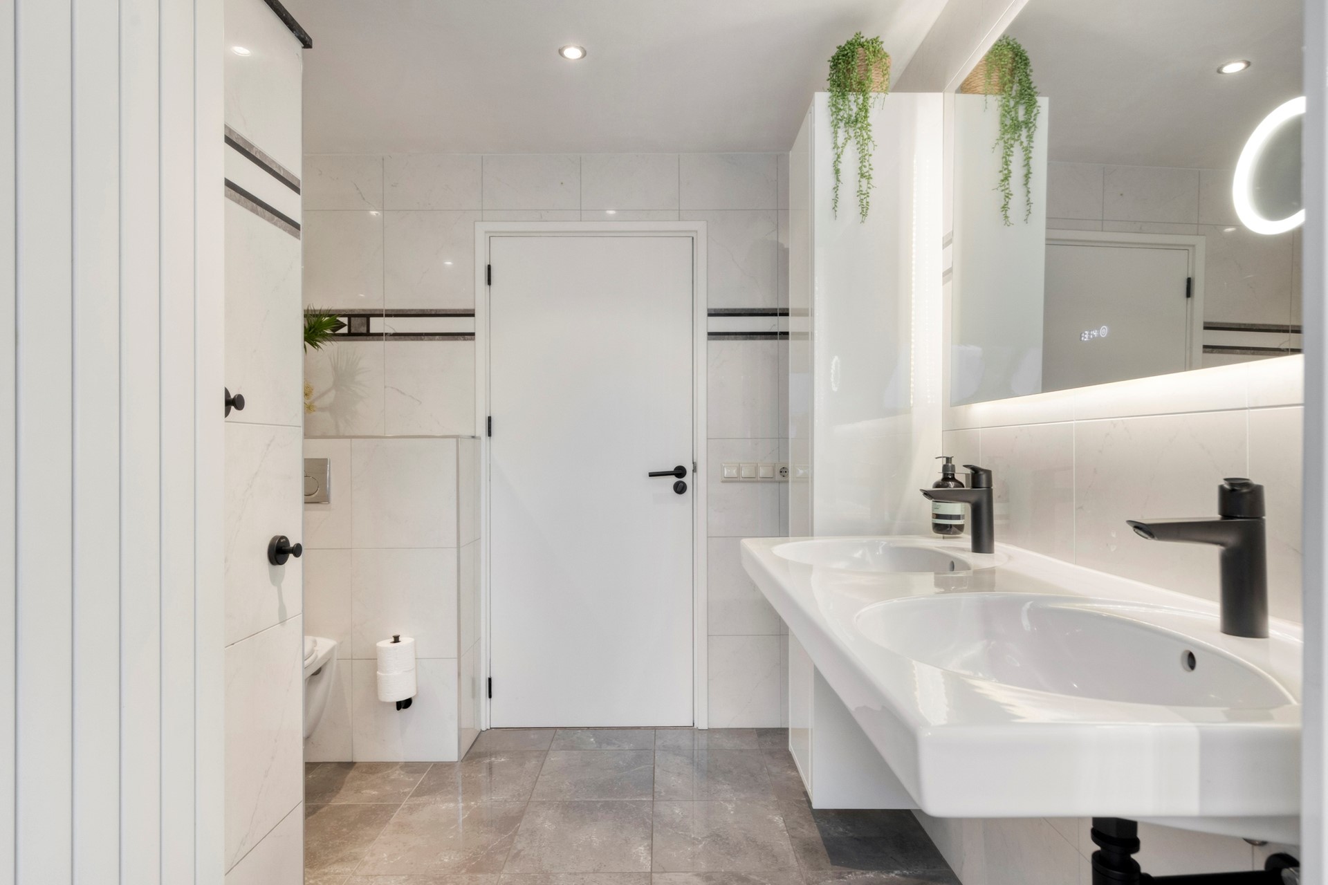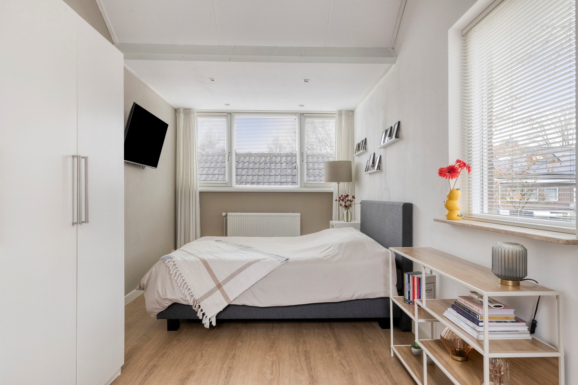Vanuit de hal heb je toegang tot de eerste verdieping. De overloop biedt toegang tot vier volwaardige slaapkamers en de complete badkamer. Aan de rechterzijde tref je de slaapkamer in de opbouw. Deze kamer geeft een ruimtelijk gevoel vanwege het hoge plafond, is voorzien van een dakkapel met inbouwspots en airco. De ruime badkamer tref je in het midden van de eerste verdieping. De badkamer is voorzien van een toilet, dubbele wastafel, design radiator, hoekbad, zeer ruime inloopdouche en elektrische vloerverwarming. Verder zijn er nog drie ruime slaapkamers. De gehele verdieping is in 2021 voorzien van een pvc-vloer.