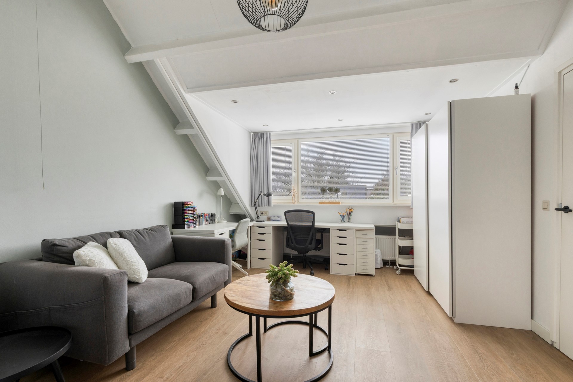Middels een vaste trap heb je toegang tot de tweede verdieping van de woning. De voorzolder is erg ruim en prima te gebruiken als speel- of werkkamer. Omdat de dakkapel over de volle breedte is geplaatst heb je hier voldoende daglicht en kun je de ruimte ook ventileren. Vanuit deze kamer heb je toegang tot de vijfde ruime slaapkamer welke praktische bergruimte achter de knieschotten heeft. Beide ruimtes zijn voorzien van een airco en pvc-vloer. Door de grote dakkapel met kunststof kozijnen en inbouwspots over de volle breedte, is hier een volwaardige verdieping van gemaakt.