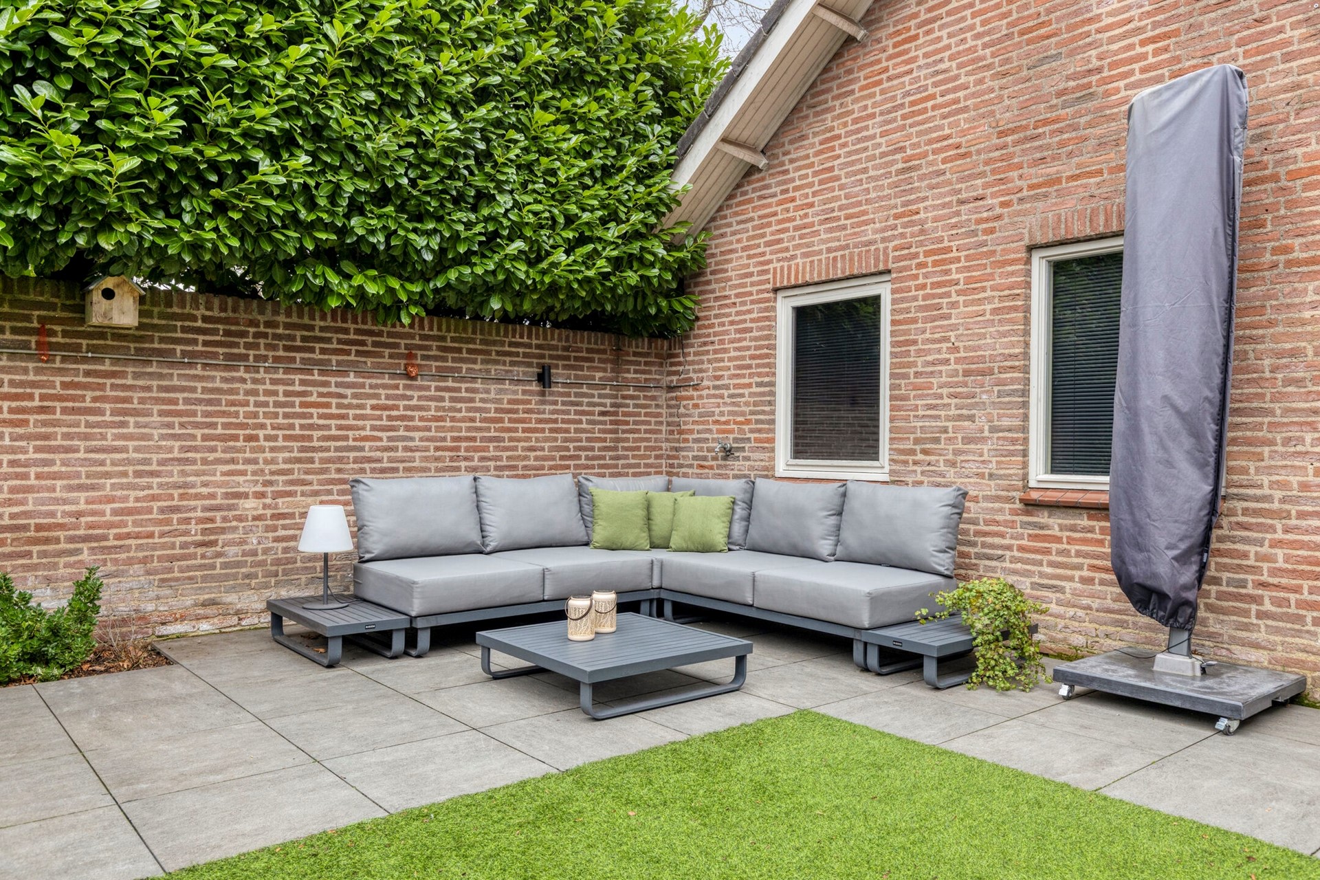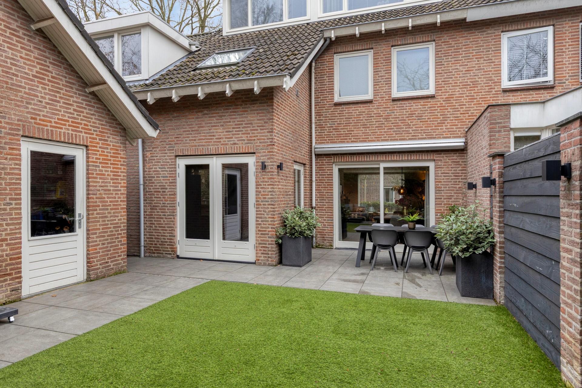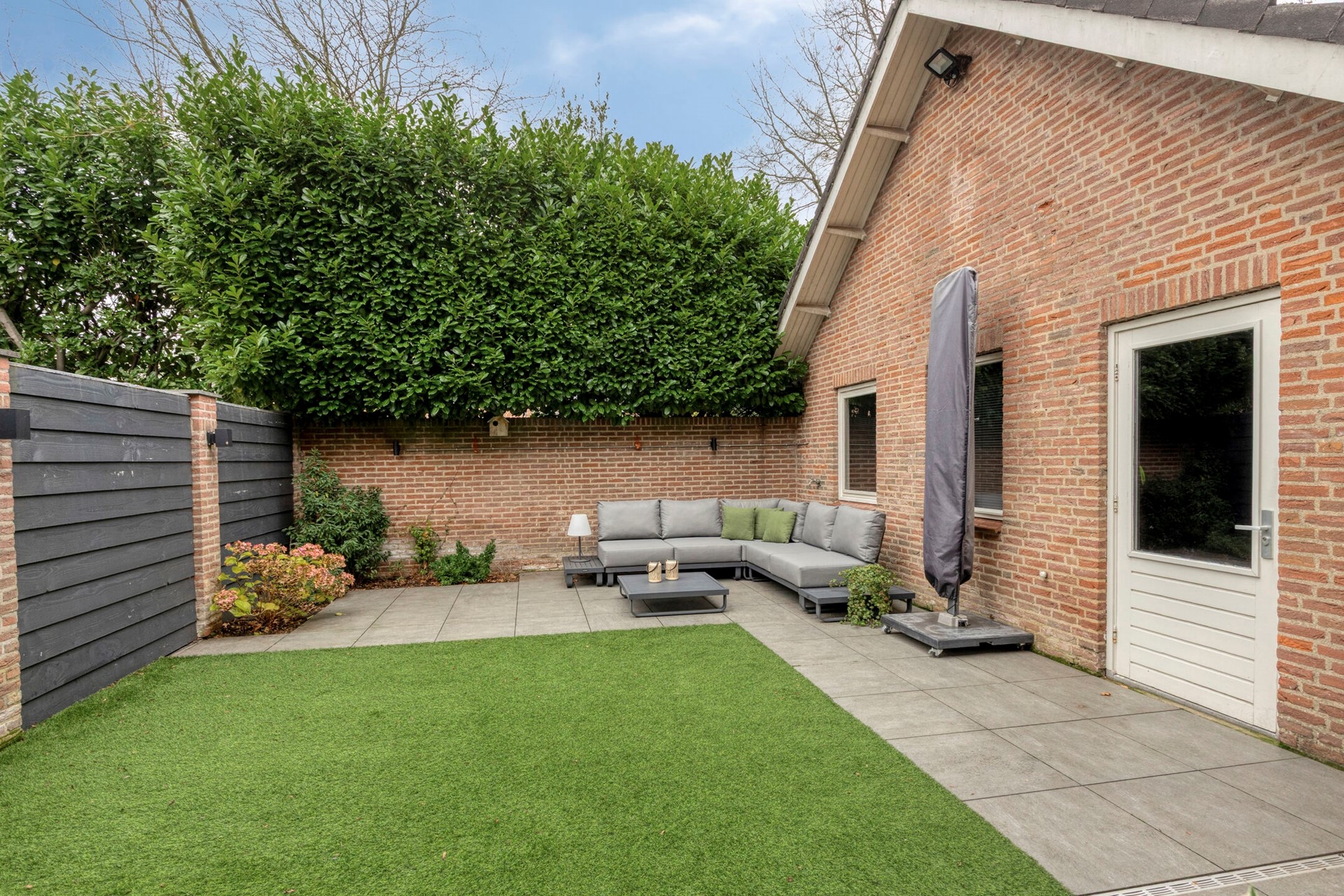 De onderhoudsvriendelijke achtertuin is volledig betegeld en voorzien van houten schutting. Je kunt hier heerlijk genieten van het buitenleven in de lente en zomer en er is indien gewenst voldoende plek voor een speeltoestel. Het kunstgras is in 2021 gelegd.