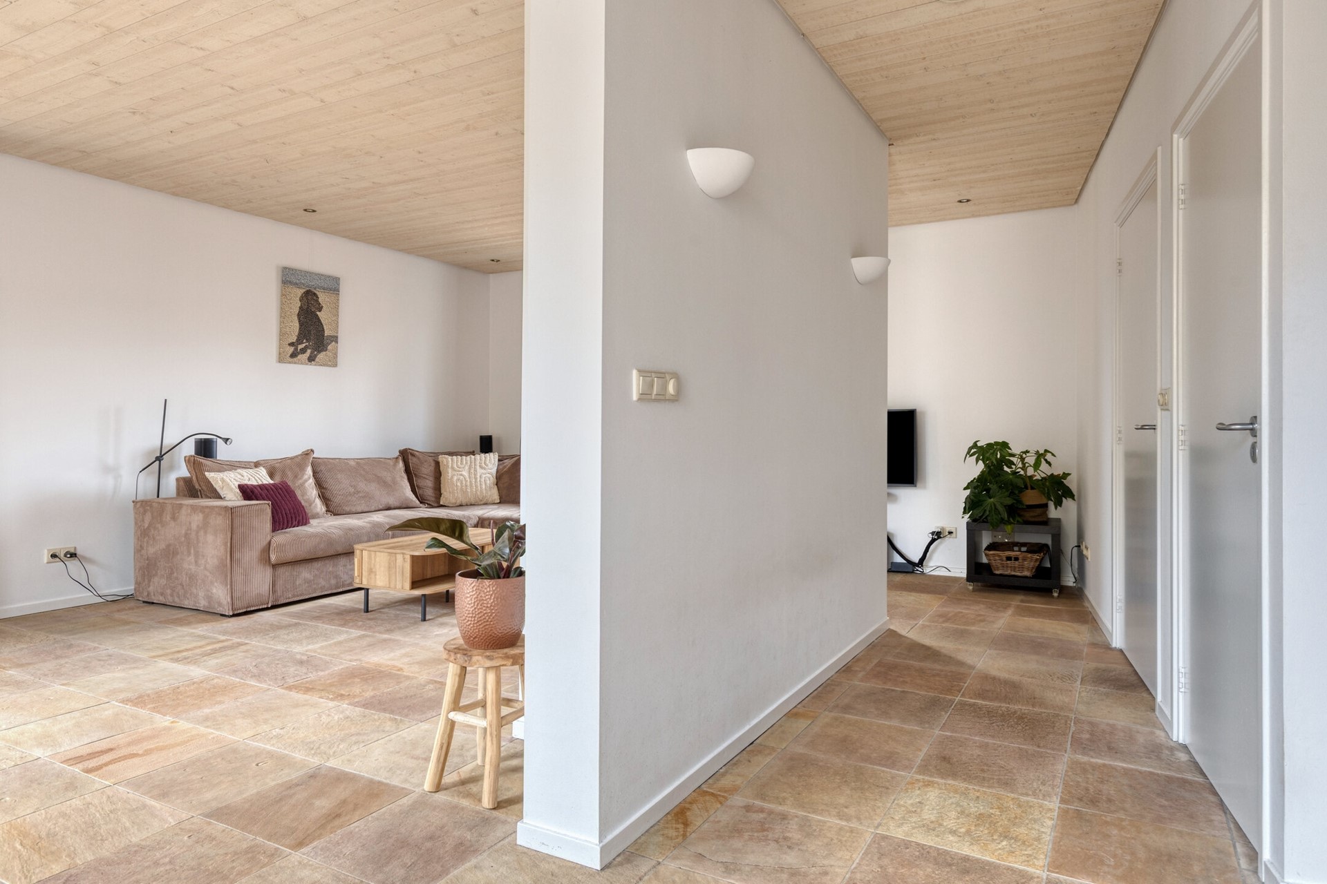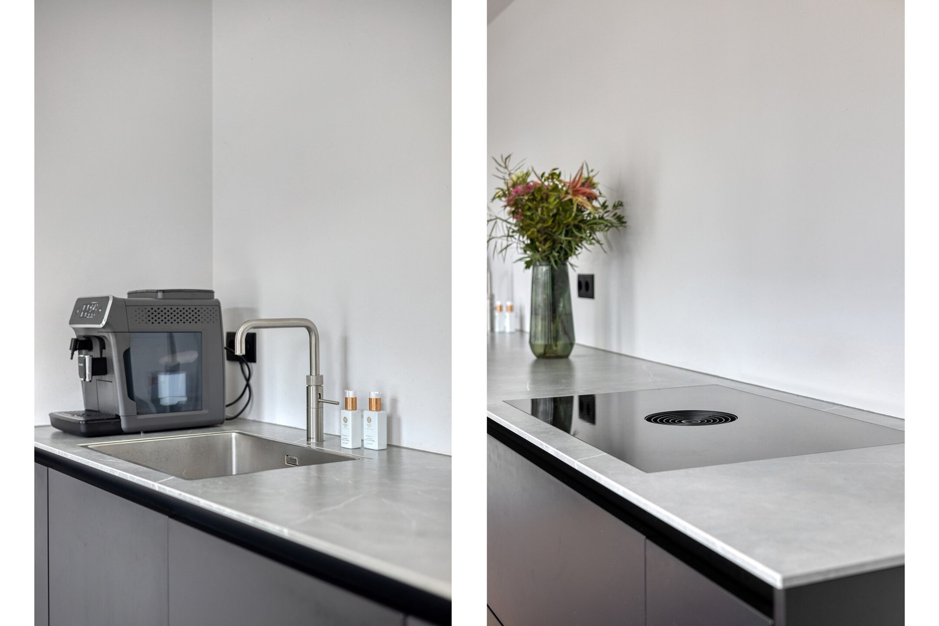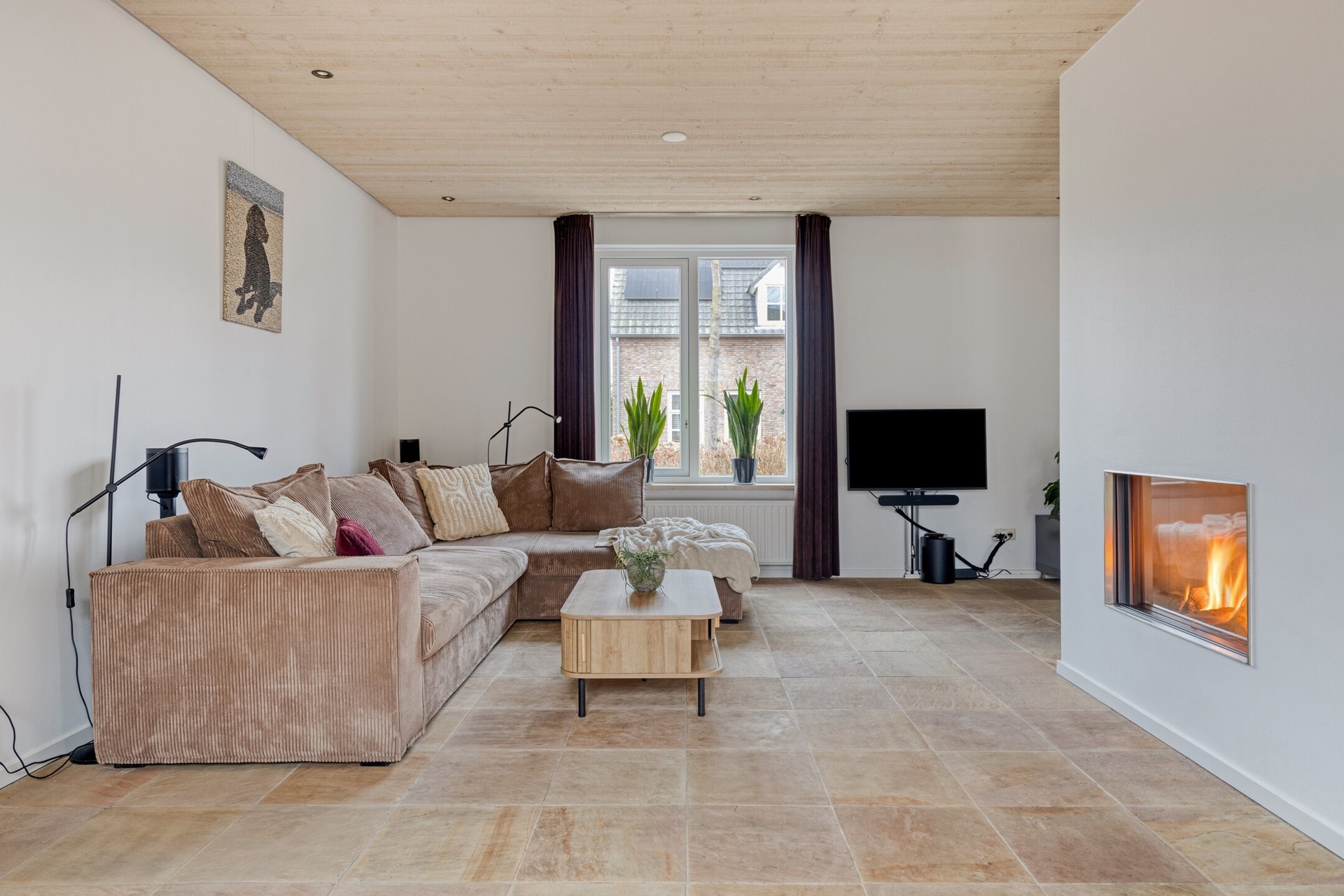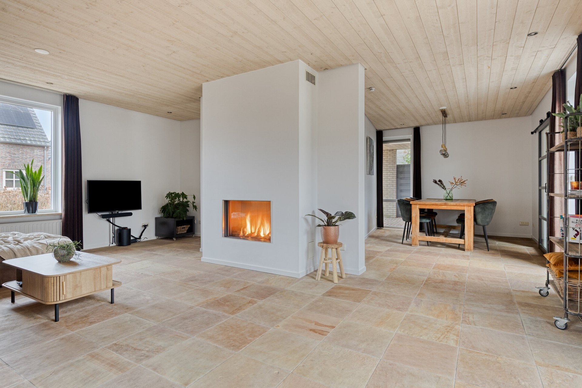 De woonkamer beschikt over openslaande tuindeuren, een sfeervolle gaskachel en het is een fijne ruimte met uitzicht op de tuin. In de woonkamer en keuken ligt vloerverwarming. Verder is vanuit de woonkamer de kelder te bereiken met voldoende opslagruimte. De keuken is in 2021 gemoderniseerd en er zijn nieuwe raamkozijnen geplaatste inclusief screens. Het plafond en de wanden zijn strak gestukt. De keuken is voorzien van luxe inbouwapparatuur van Miele zoals een koelkast, vriezer, grote spoelbak, oven, vaatwasmachine, quooker en een Bora kookplaat /afzuiging. Vanuit de keuken kom je in de inpandige garage en berging. De tuin is bereikbaar via de keuken.