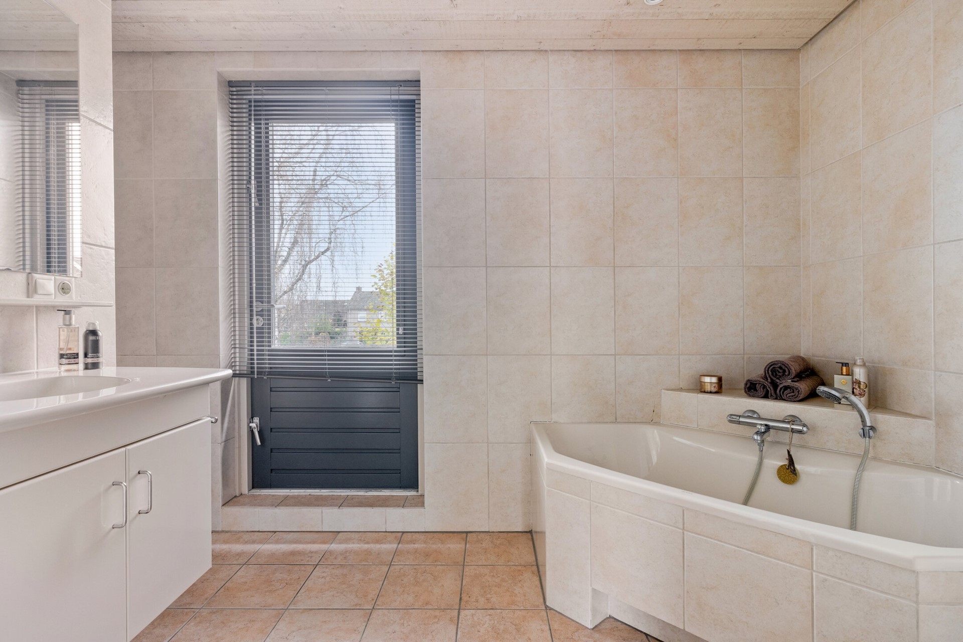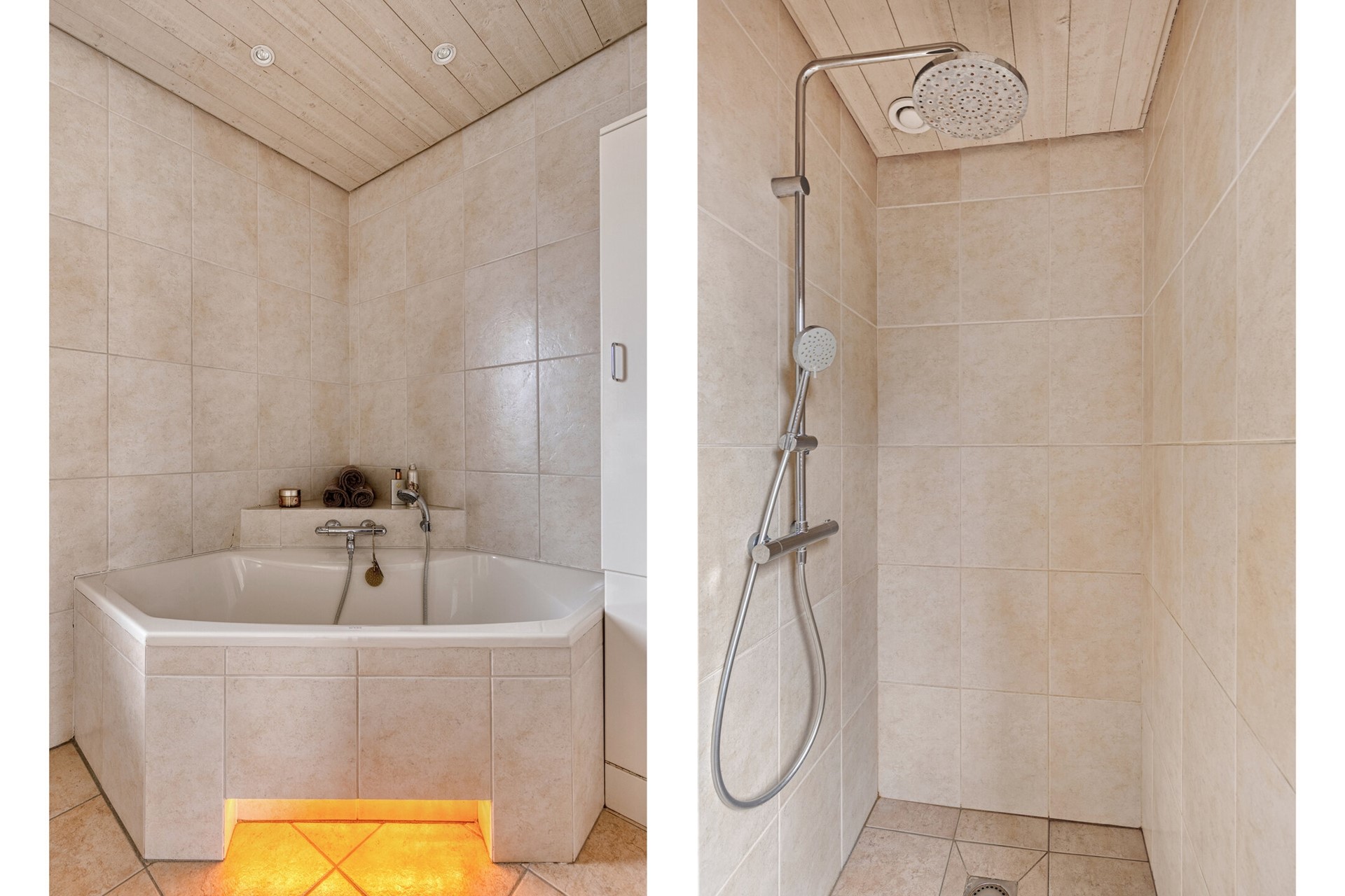 Overloop met toegang tot de 3 slaapkamers, apart toilet, badkamer en vaste trap naar de tweede verdieping. De badkamer is voorzien van een ligbad, douche, wastafel en vloerverwarming. Er ligt een praktische laminaatvloer op deze verdieping en alle slaapkamers zijn voorzien van inbouwkasten.