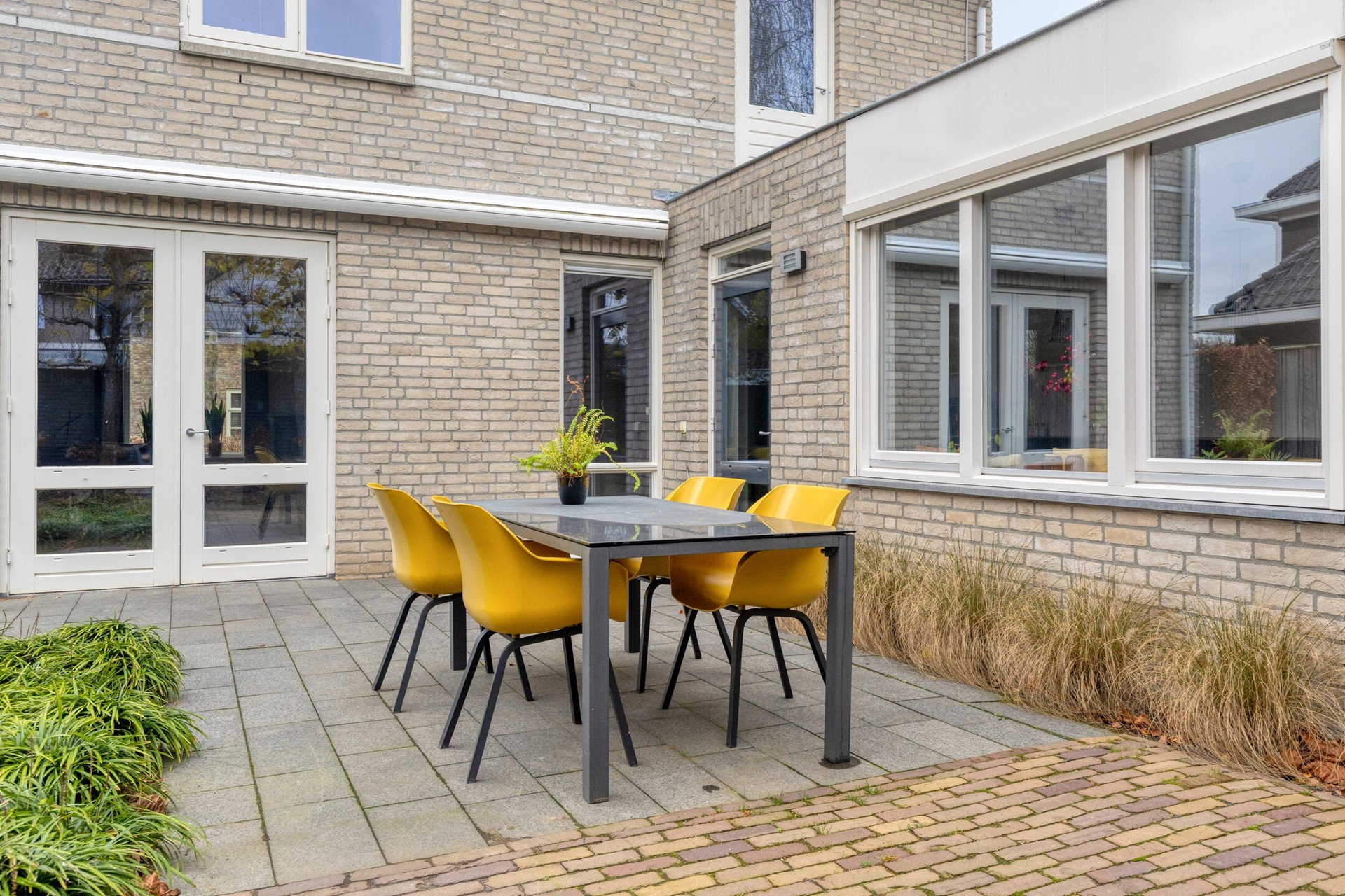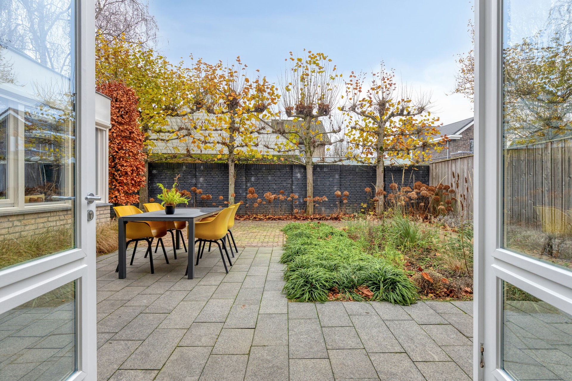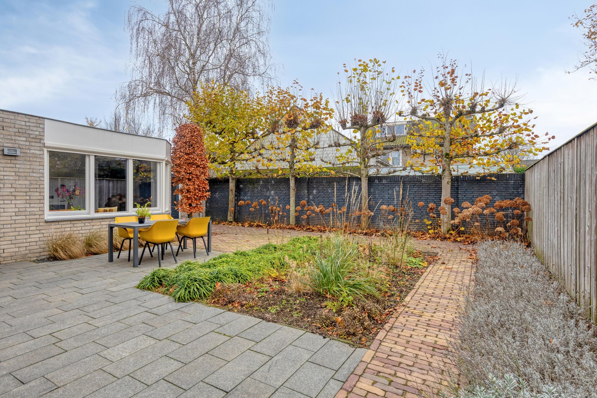 De fraai aangelegde tuin ligt op het Zuiden. Afgelopen voorjaar zijn nog nieuwe plantenperken aangelegd. Er is toegang tot de tuin via de keuken en de garage. De tuin is volledig afgesloten. Ideaal voor kleine kinderen of huisdieren. Er zit een poort aan de zijkant. Voor de warme zomerdagen is er een elektrische zonneluifel.