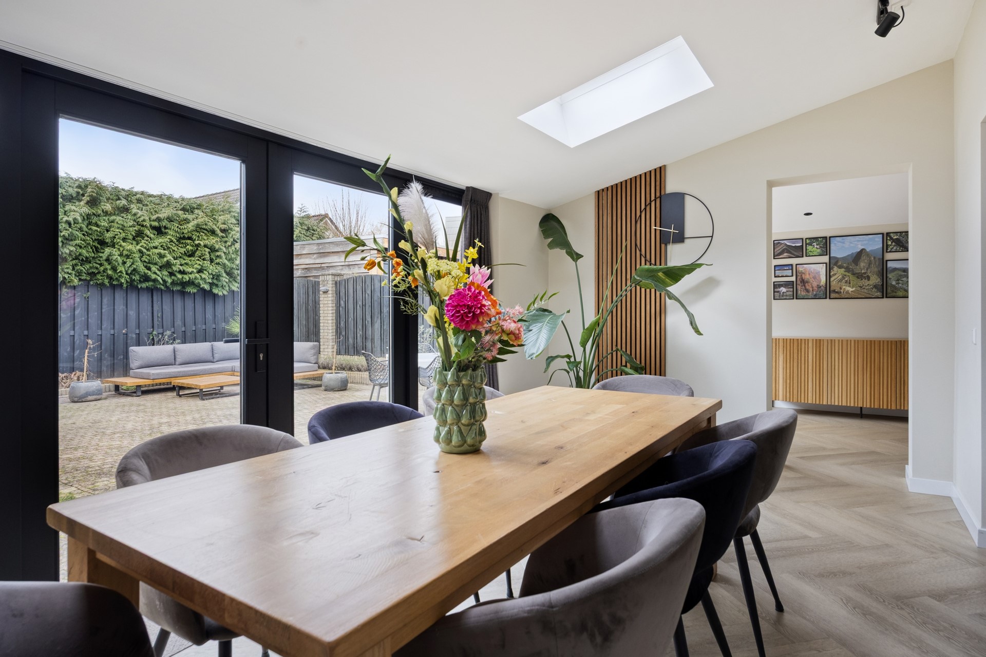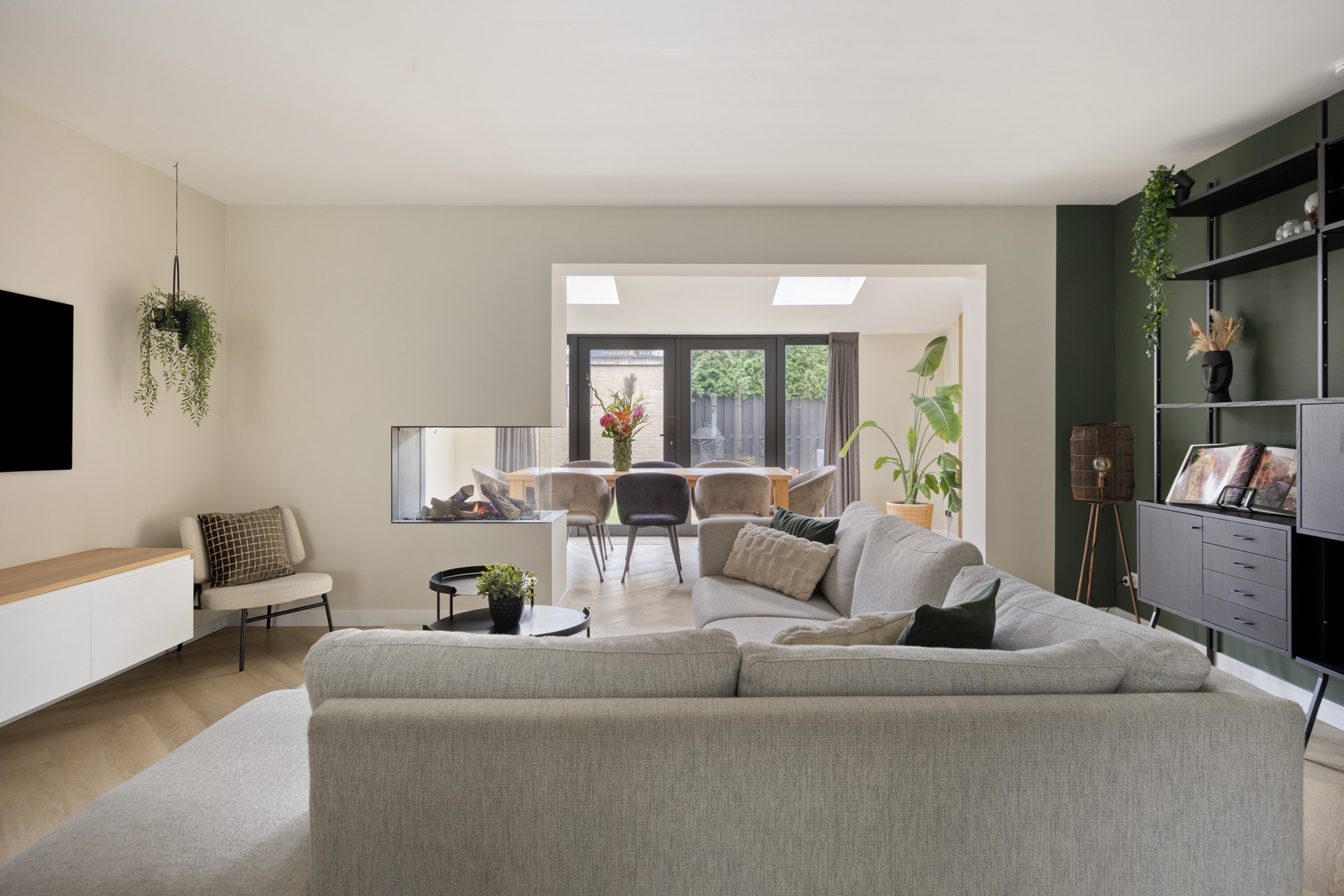 Op de gehele begane grond (inclusief de garage) ligt vloerverwarming met een pvc vloer. Tussen de keuken en woonkamer is een provisiekast onder de trap. Om het plaatje compleet te maken is er een sfeervolle gaskachel. Vanuit de woonkamer is de tuin te bereiken middels openslaande tuindeuren. Deze pui is in 2021 vernieuwd.
