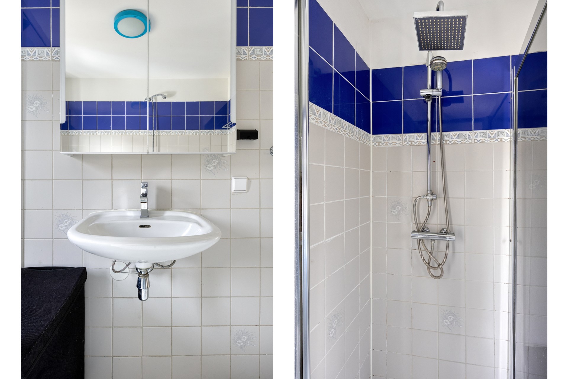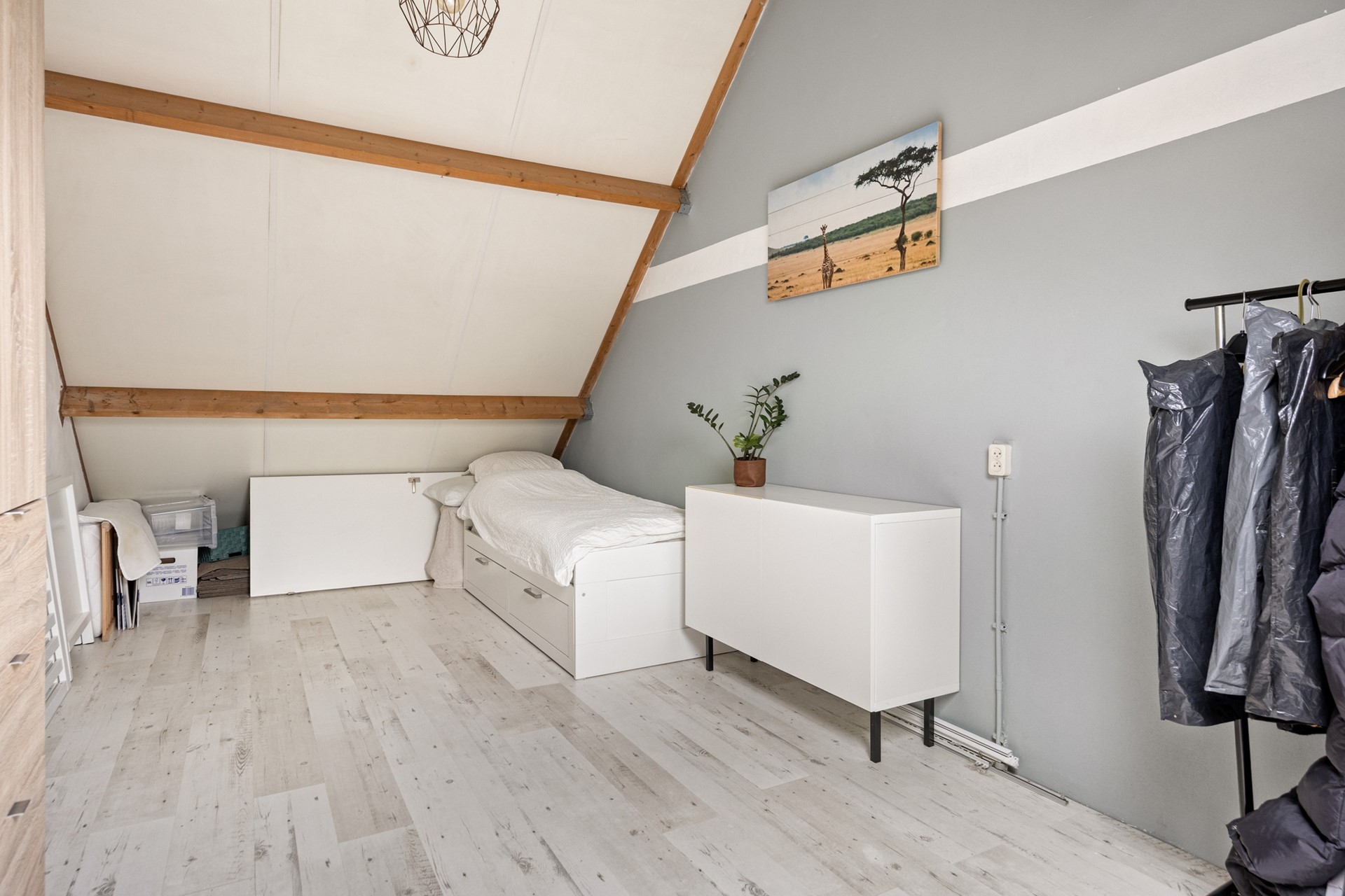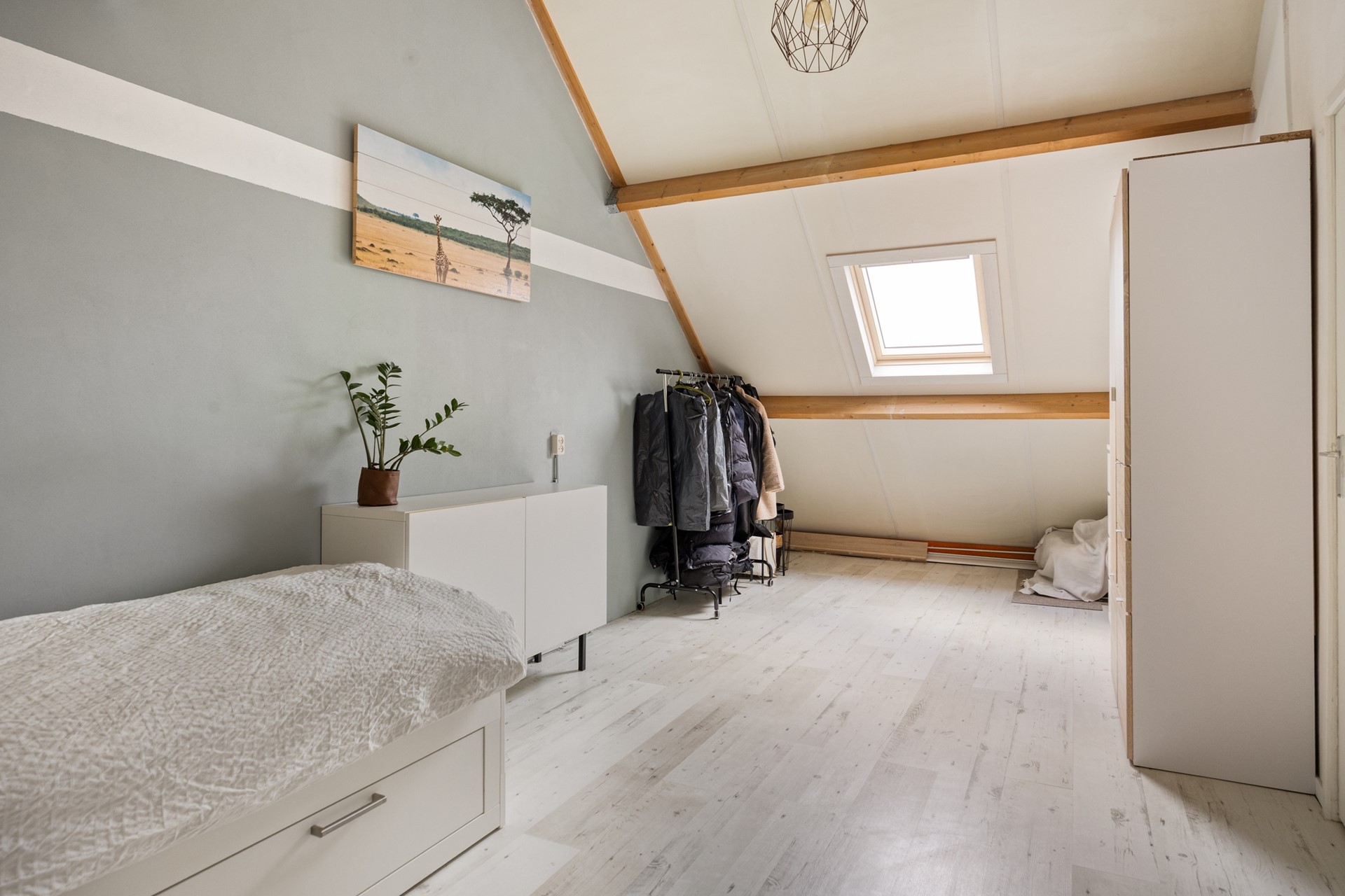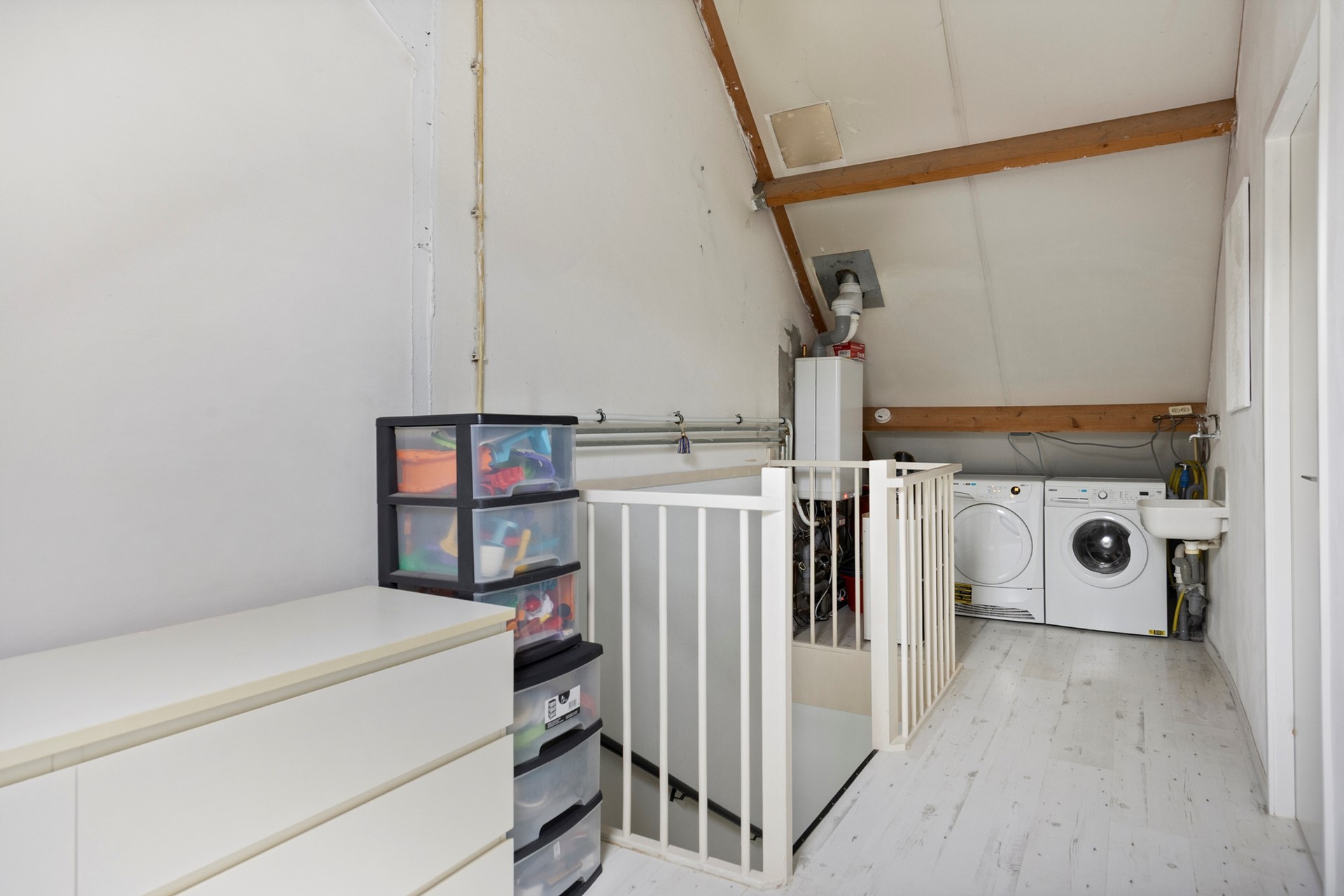 Een vaste trap geeft toegang tot de tweede verdieping. Hier is de voorzolder met de nodige bergruimte, opstelling voor de wasmachine en droger, een wasbak en de CV ketel (Intergas 2021) is hier geplaatst. Vanuit de voorzolder is er toegang tot de vierde ruime slaapkamer met dakraam (2026).