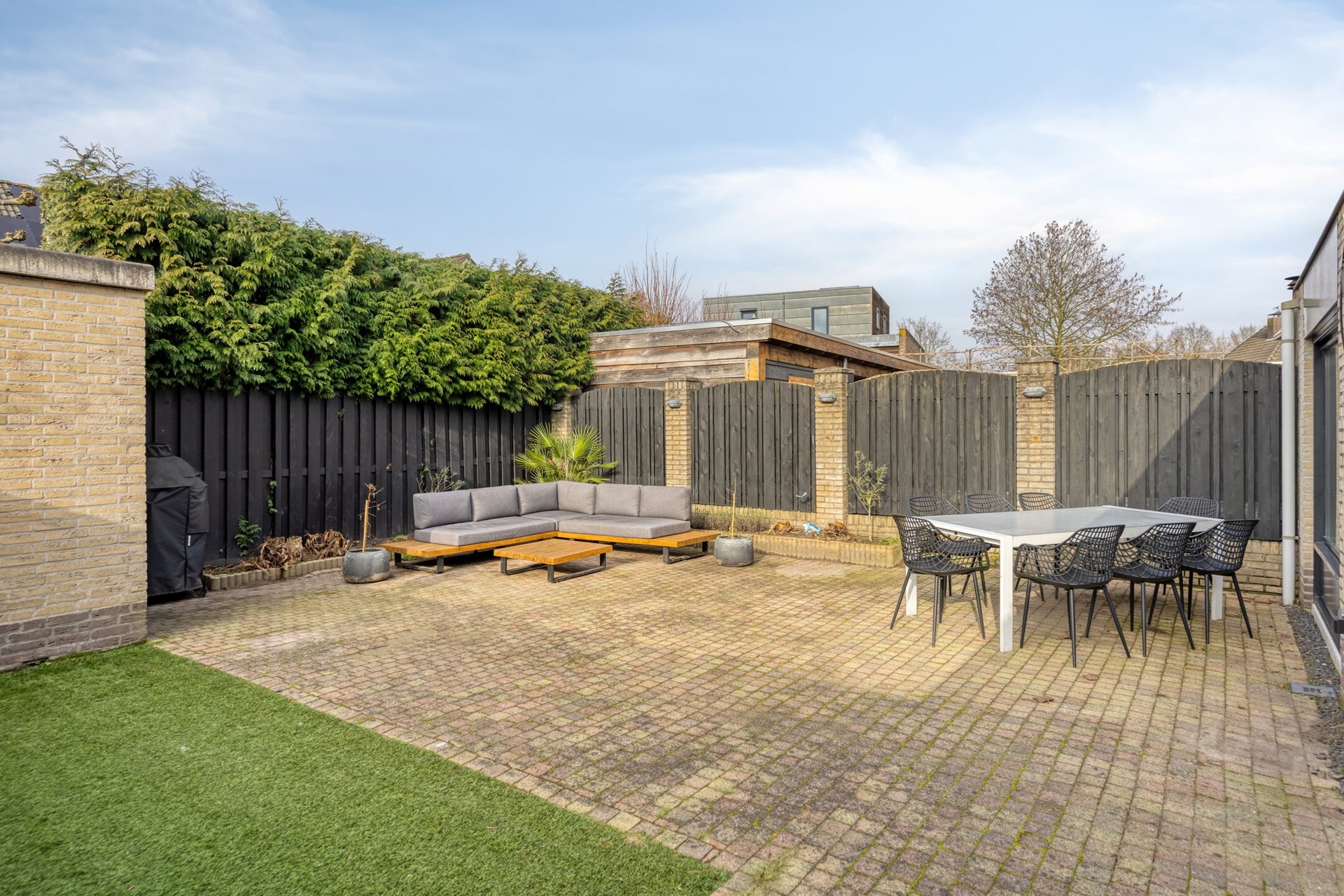 De tuin ligt op het noordwesten en is keurig omsloten. In de onderhoudsvriendelijke tuin ligt kunstgras en de stenen berging is hier te vinden.